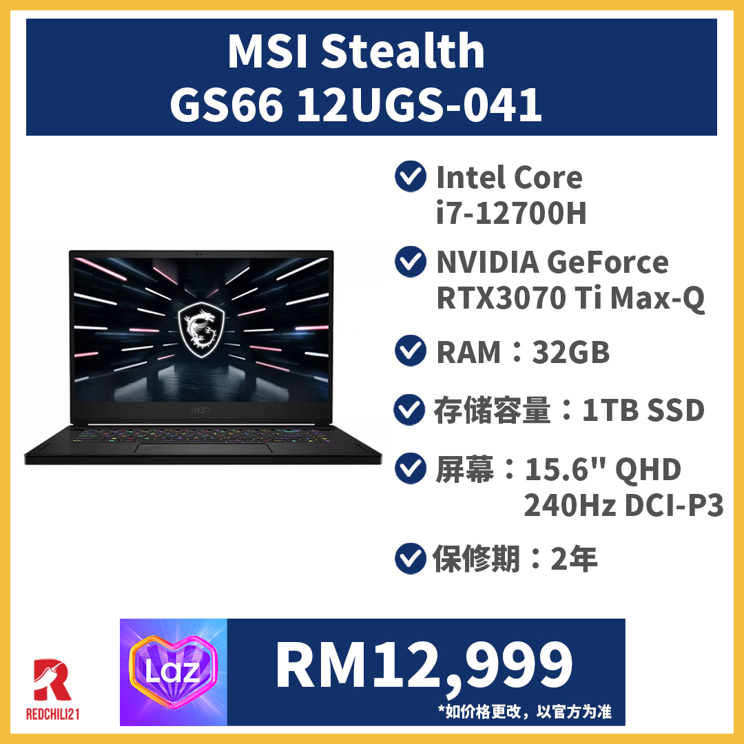 ▪ ⑦ MSI Stealth GS66 12UGS-041 游戏笔记本电脑