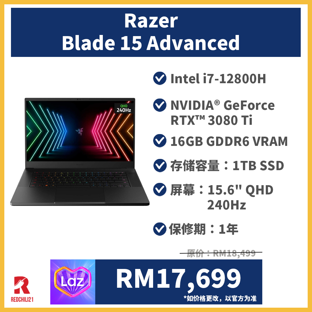 ▪ ⑧ Razer Blade 15 Advanced 游戏笔记本电脑