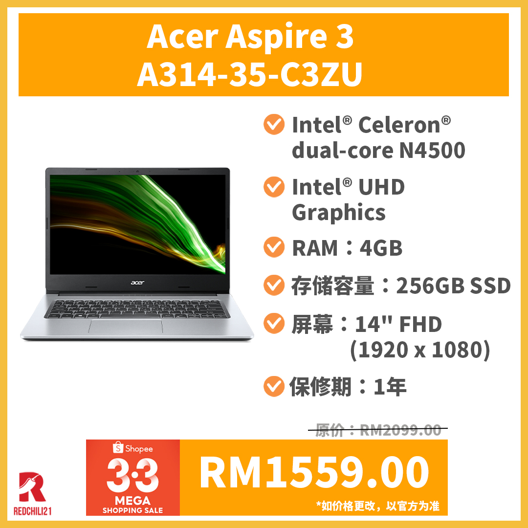 ▪ ① Acer Aspire 3 A314-35-C3ZU 笔记型电脑