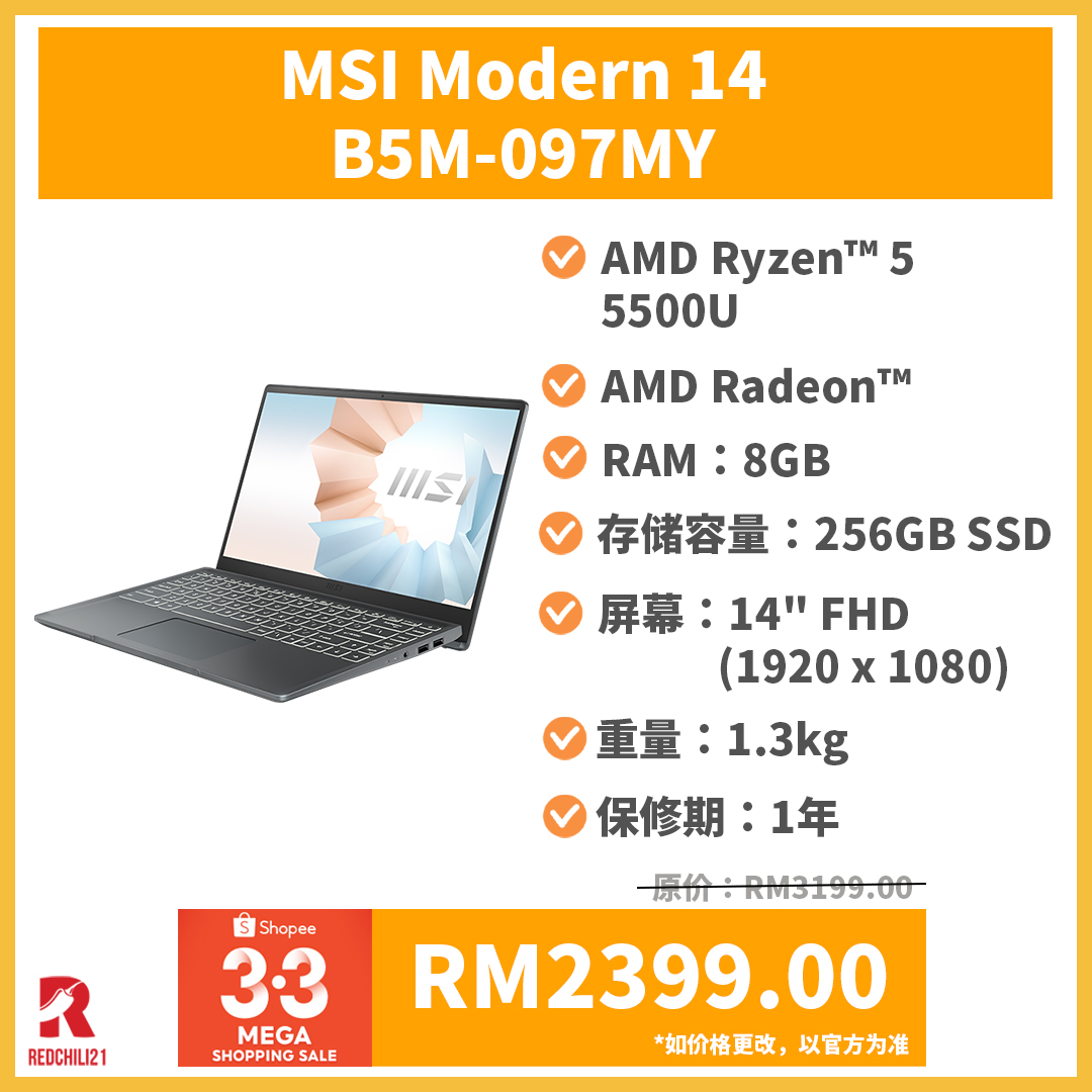 ▪ ⑥ MSI MODERN 14 B5M-097MY 笔记型电脑