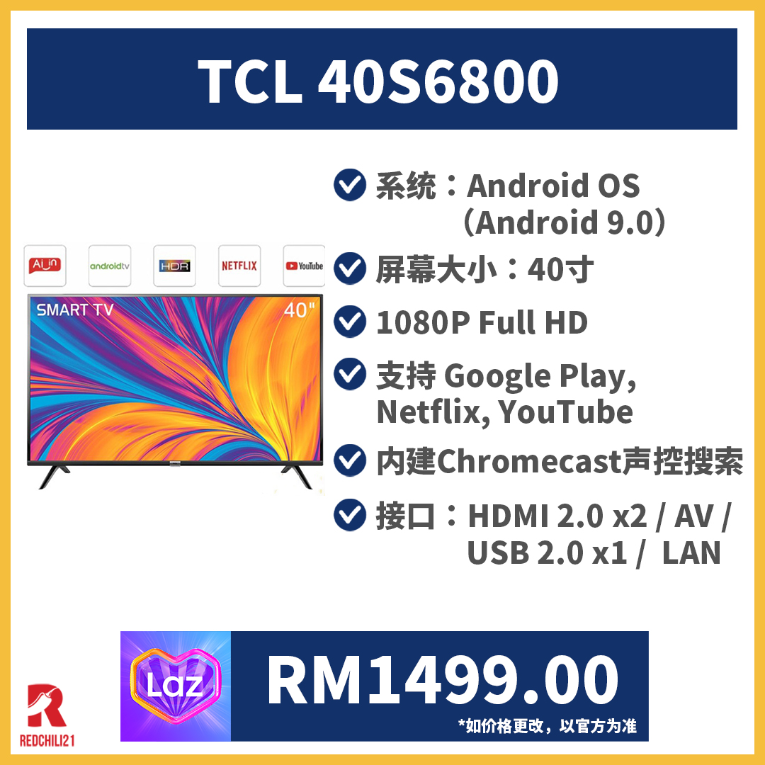 TCL 40S6800 40″ S6800 安卓 AI 智能电视