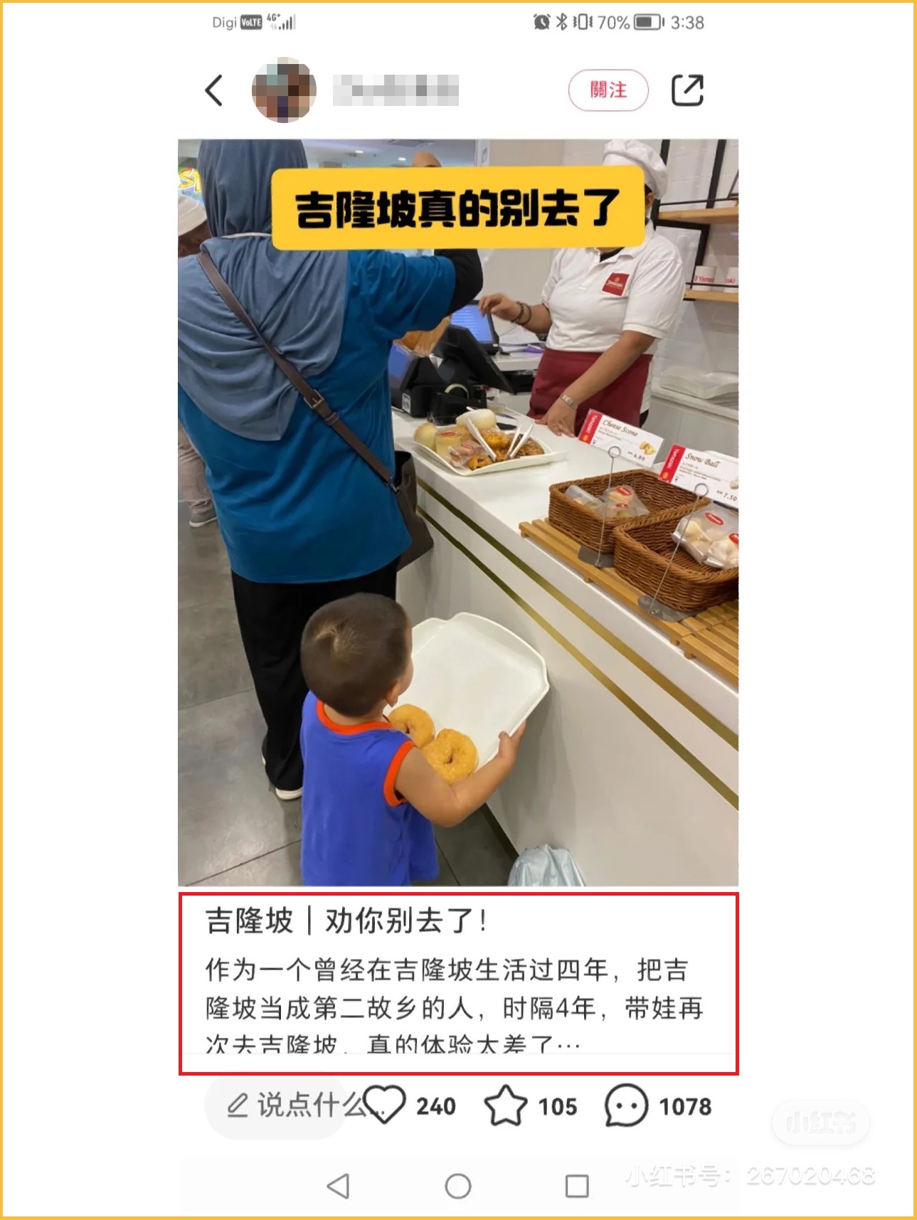 近日一则帖文在小红书引发热议,自称在马来西亚生活过4年的中国网友发长文吐槽大马,食物不好吃、没有人情味、经济差等等。