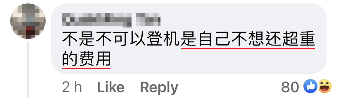 她抵达机场后才发现行李超重,被告知需支付RM330的额外费用。女子表示不愿支付这笔费用,于是她把部分衣物取出,打算以2个手提行李登机,却在安检处被拦了下来。