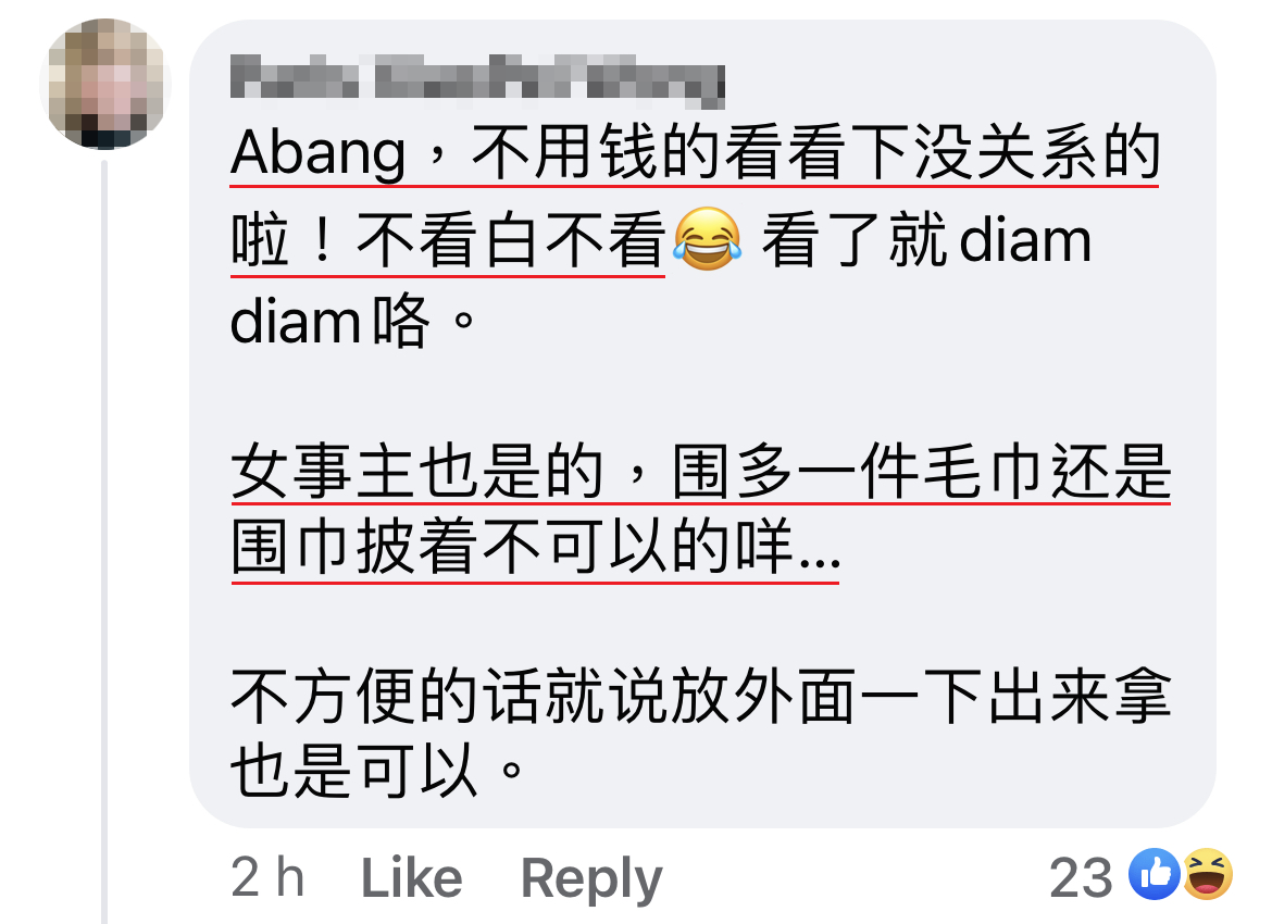 或许一些女士会认为这是习以为常的事,但对于我这个穆斯林来说还是无法接受。所以请大家注意一下喔!谢谢大家!
