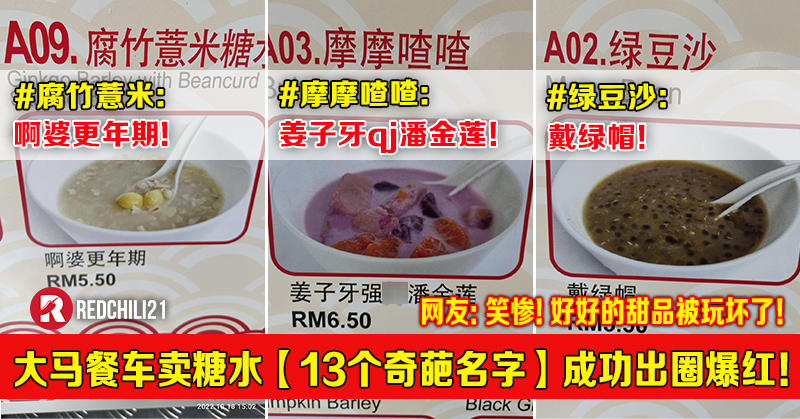 大马餐车卖糖水【13个奇葩名字】成功出圈爆红!网友:哈哈哈笑惨!好好的甜品被玩坏了!