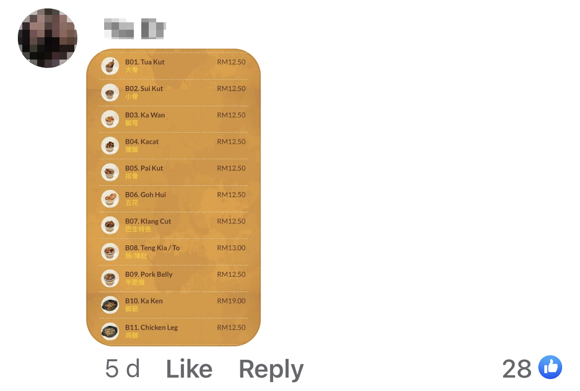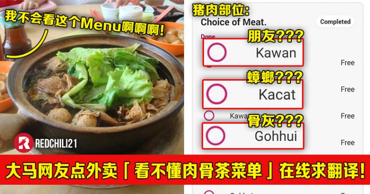 近日一名脸书网友发文求助,看不懂外卖平台上的一家肉骨茶菜单,在线等翻译!