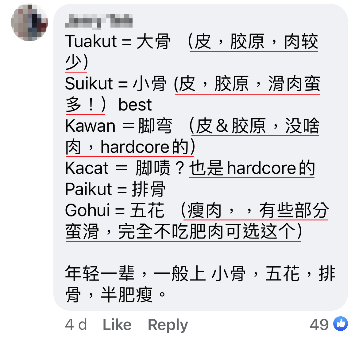 ▼ 该事主想要在 Foodpanda 平台点肉骨茶,结果到了“猪肉部位”选项,她愣住了!为什么这些单词她几乎都看不懂?即熟悉又陌生的感觉…..