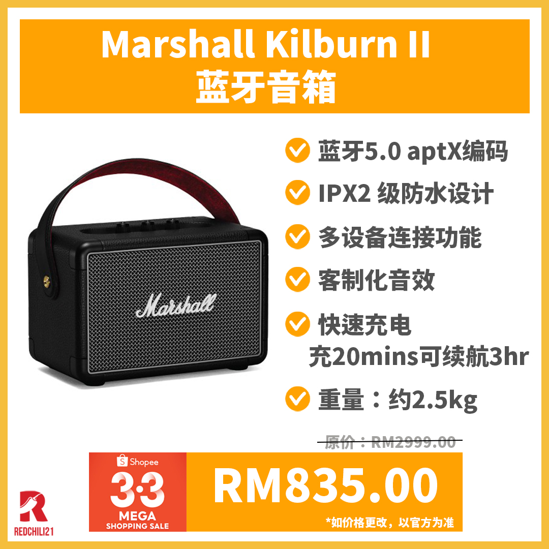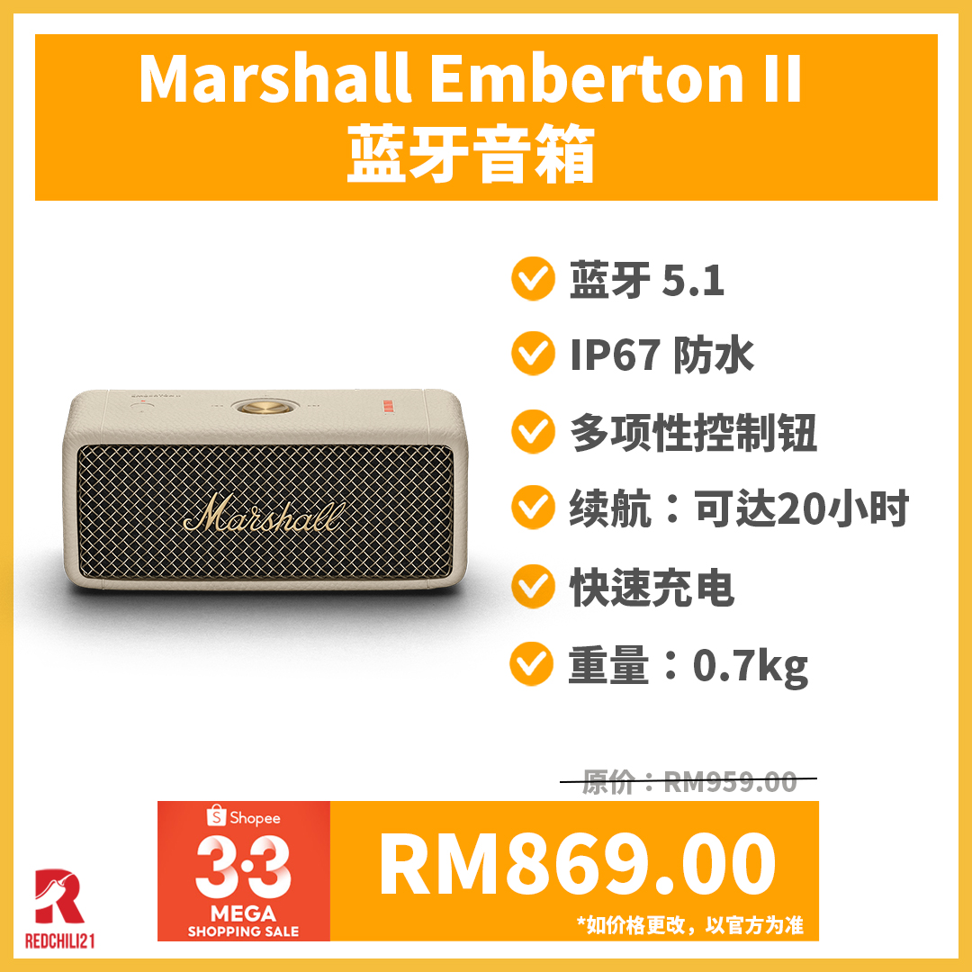 ⑦ Marshall Emberton II 防水无线蓝牙音箱