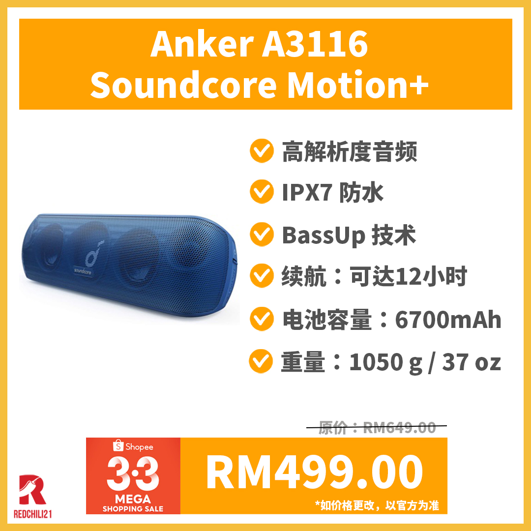 ② Anker A3116 Soundcore Motion+ 蓝牙音箱