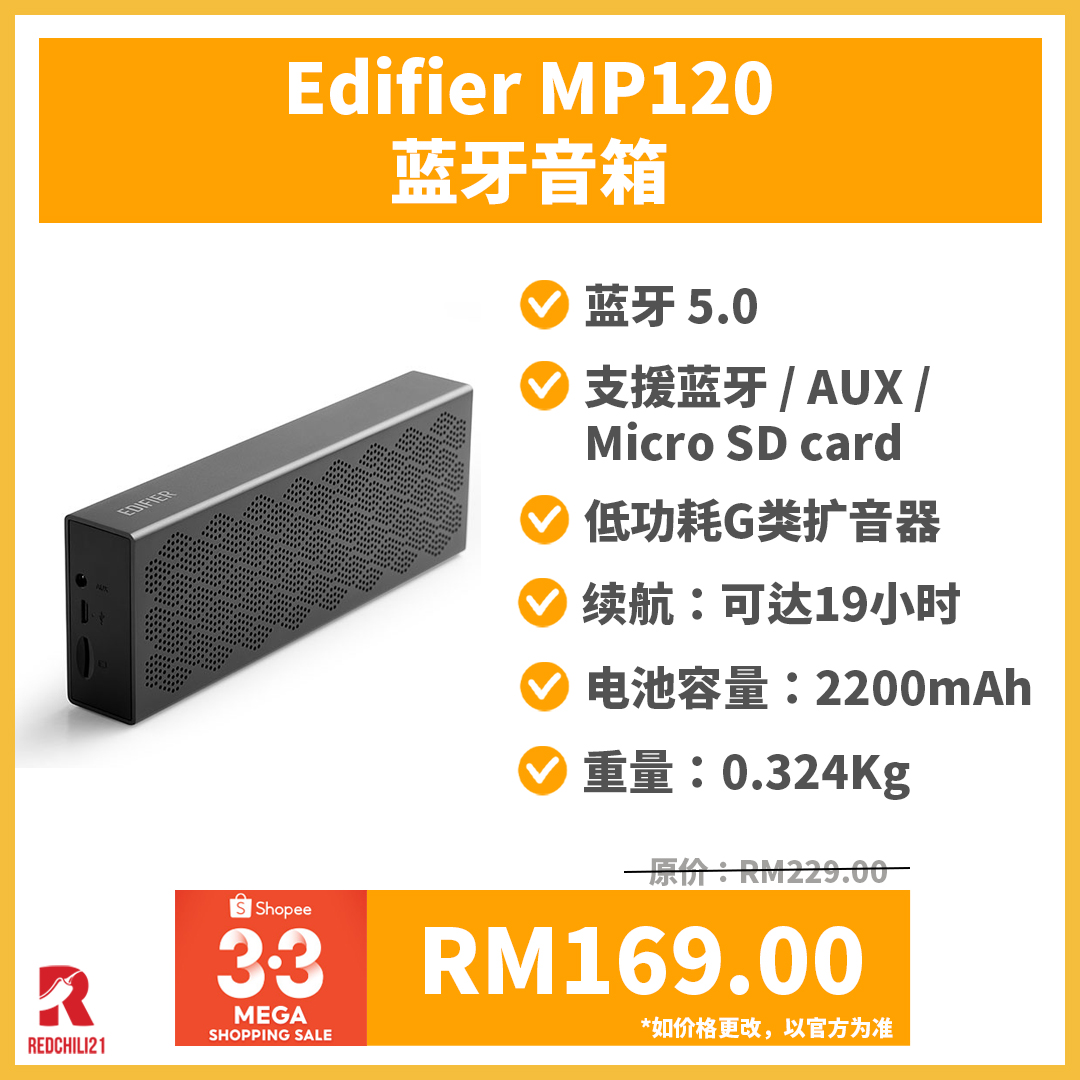 拥有一台便携式的蓝牙音箱,不管去到哪里都有音乐相伴!接下来就为大家推荐8款高音质的蓝牙音箱,即将来临的 Shopee 3.3大促销入手更值得哦!