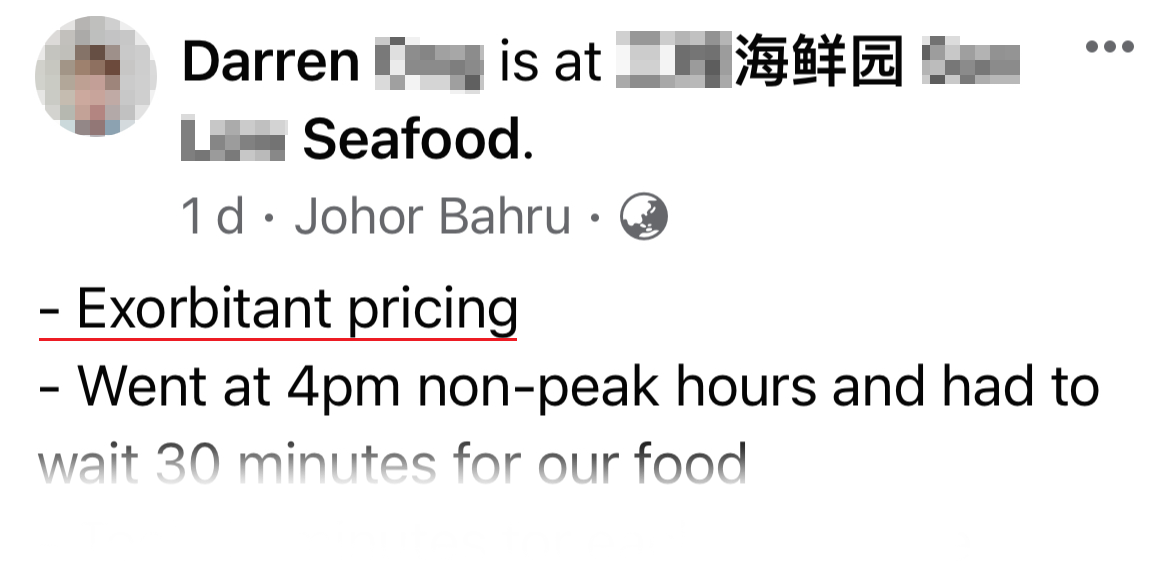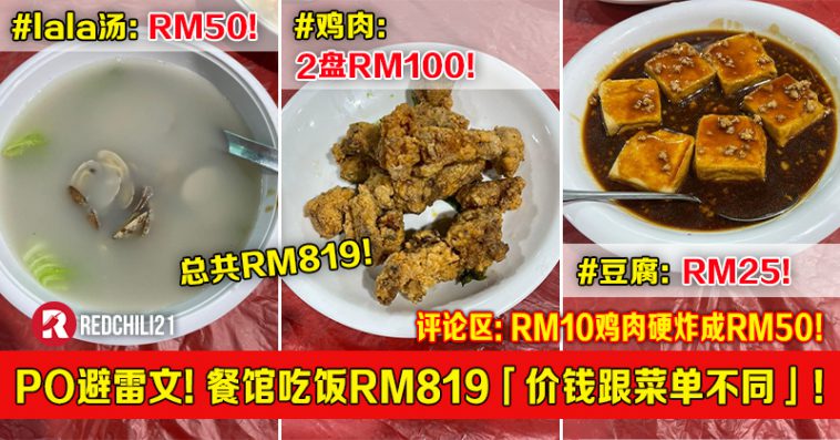 新山网友PO避雷文!餐馆吃饭RM819「价钱跟菜单不同」!评论区:RM10鸡肉硬炸成RM50!
