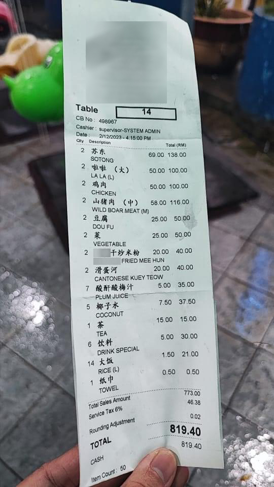 14个人吃煮炒RM819,你说贵不贵?