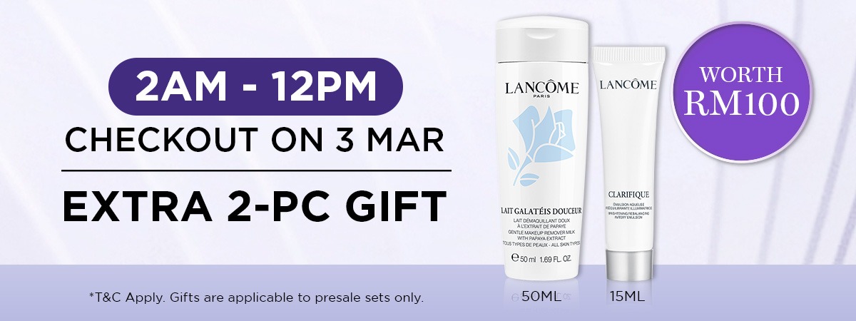 ▼ 3月3日当天2am至12pm付款结帐,可额外获得2件 Lancome 赠品!