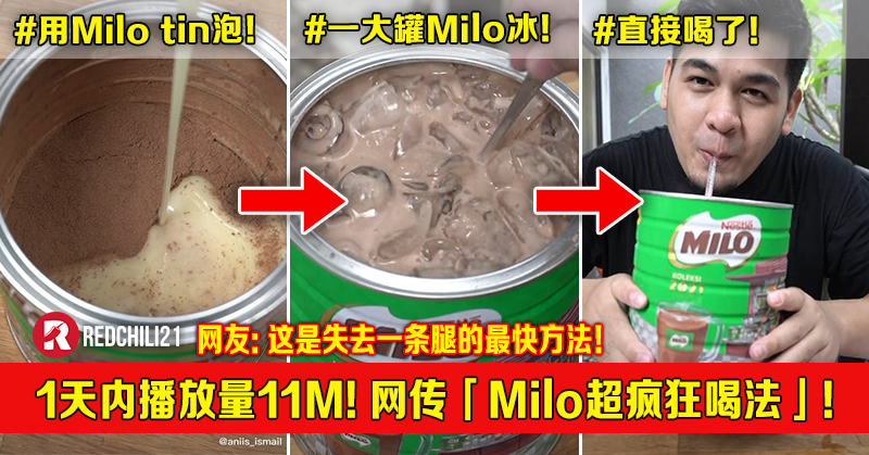 1天内播放量竟多达11million!网传「Milo超疯狂喝法」用Milo Tin泡满一大罐直接喝!