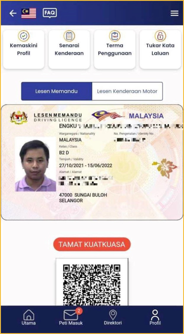 ▼ 点击“Lesen Memandu”显示电子驾照。