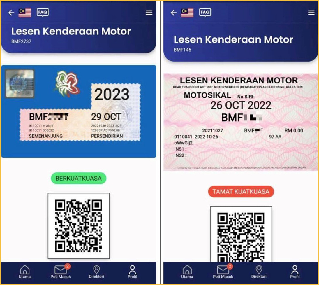 ▼ 点击“Lesen Kederaan Motor” 显示电子路税。