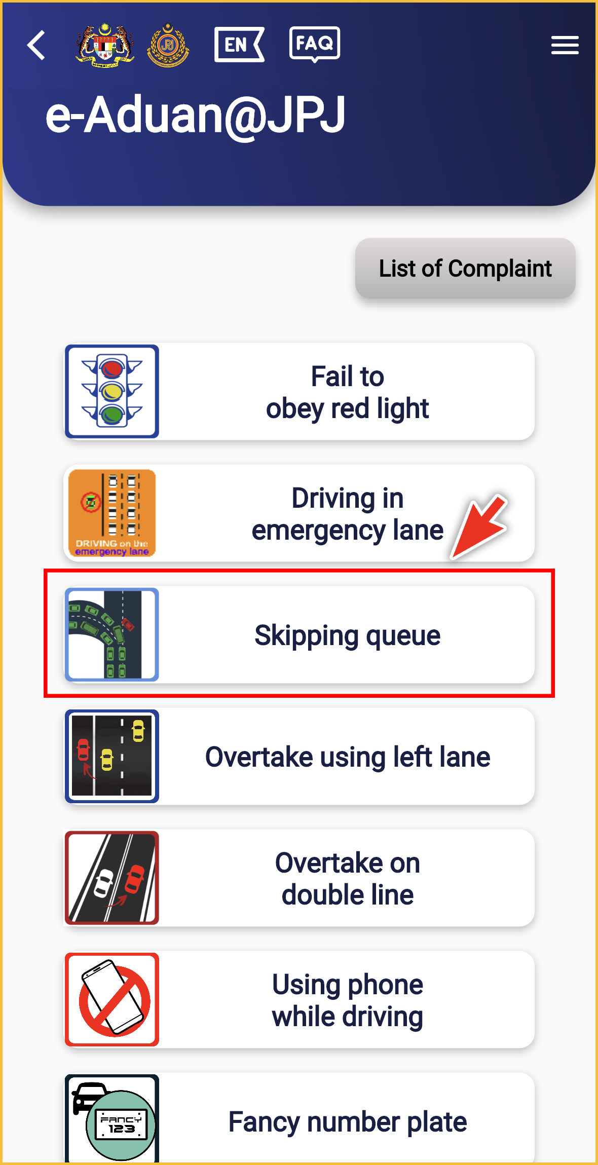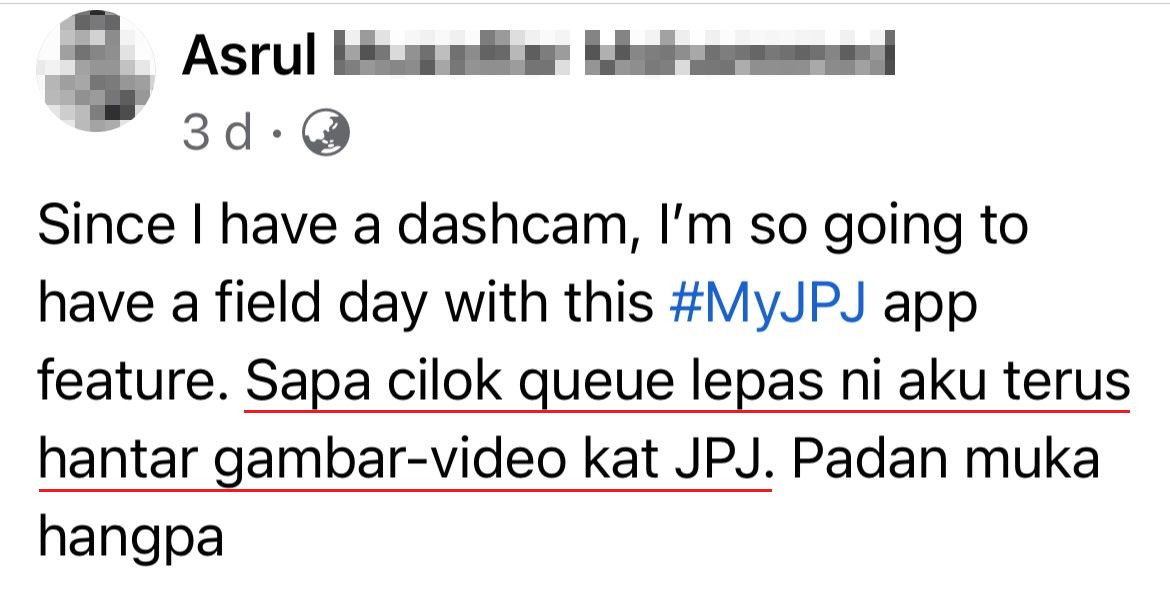 网上流传一则网友帖文,教你如何通过 MyJPJ 应用程序举报“插队的驾驶者”,超简单der!现在就学起来!