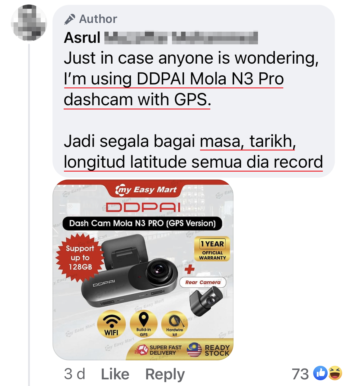 楼主推荐款(DDPAI Mola N3 Pro):Shopee【点击这里】| Lazada【点击这里