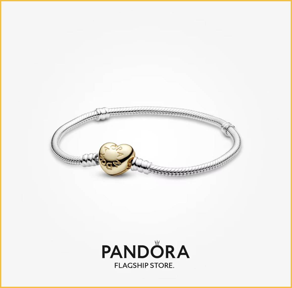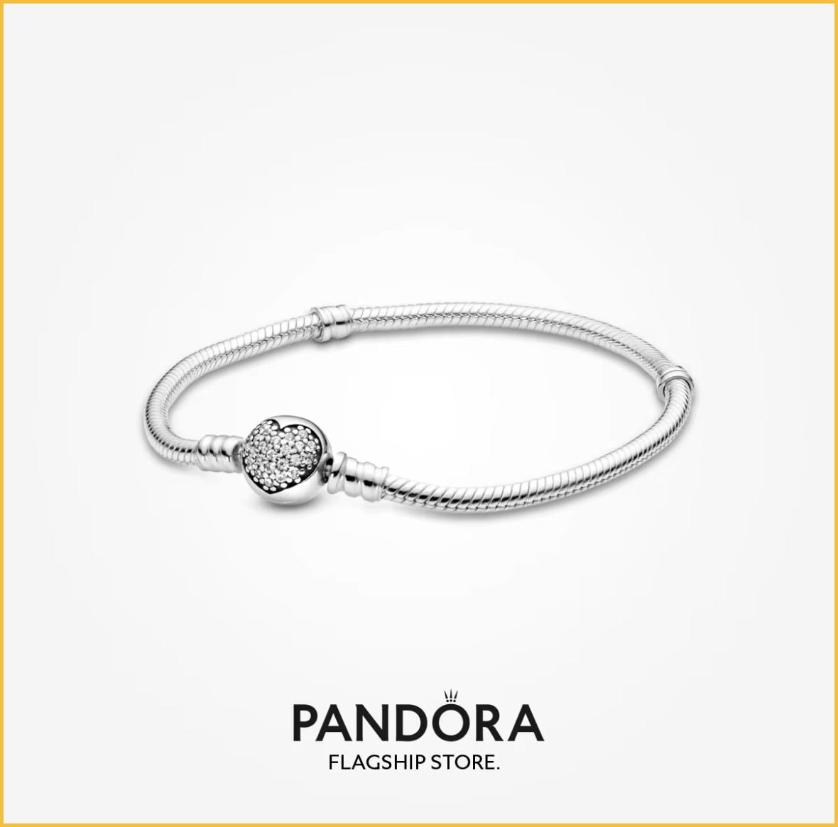 ▼ ① Pandora Moments Sparkling Heart Clasp Snake Chain Bracelet