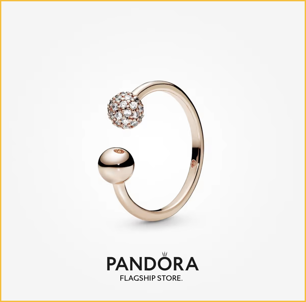 ▼ ⑨ Pandora 14k Rose Gold Plated Polished & Pavé Bead Open Ring