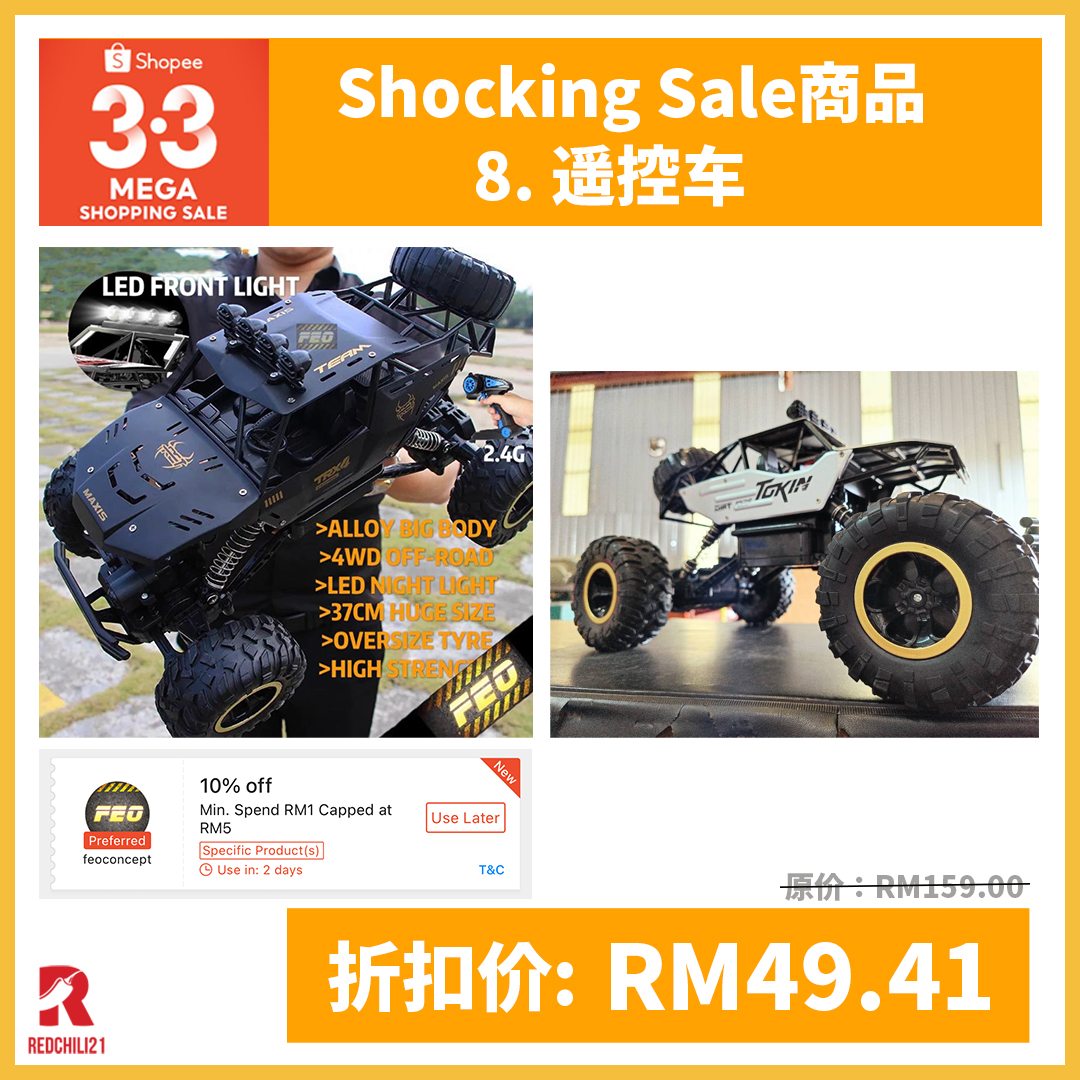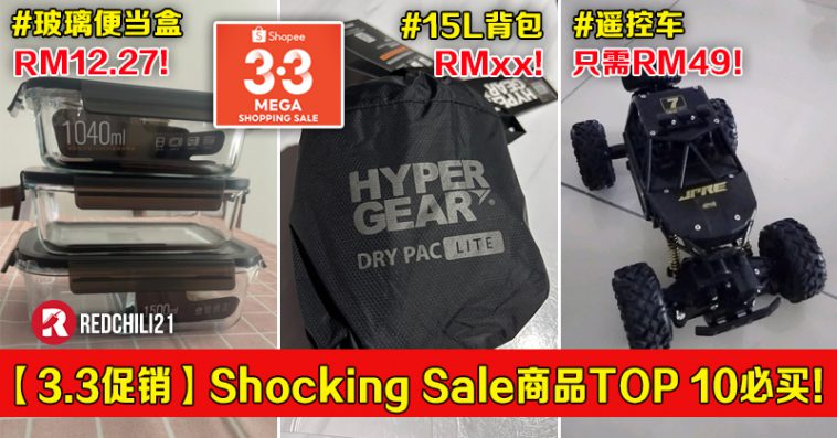 即将来临的 Shopee 3.3 大促销,除了商家推出的大减价,更不能错过 Shopee Shocking Sale 商品!3月3日凌晨12点,准时抢购!偷偷告诉你优惠码,扣完再扣更便宜!
