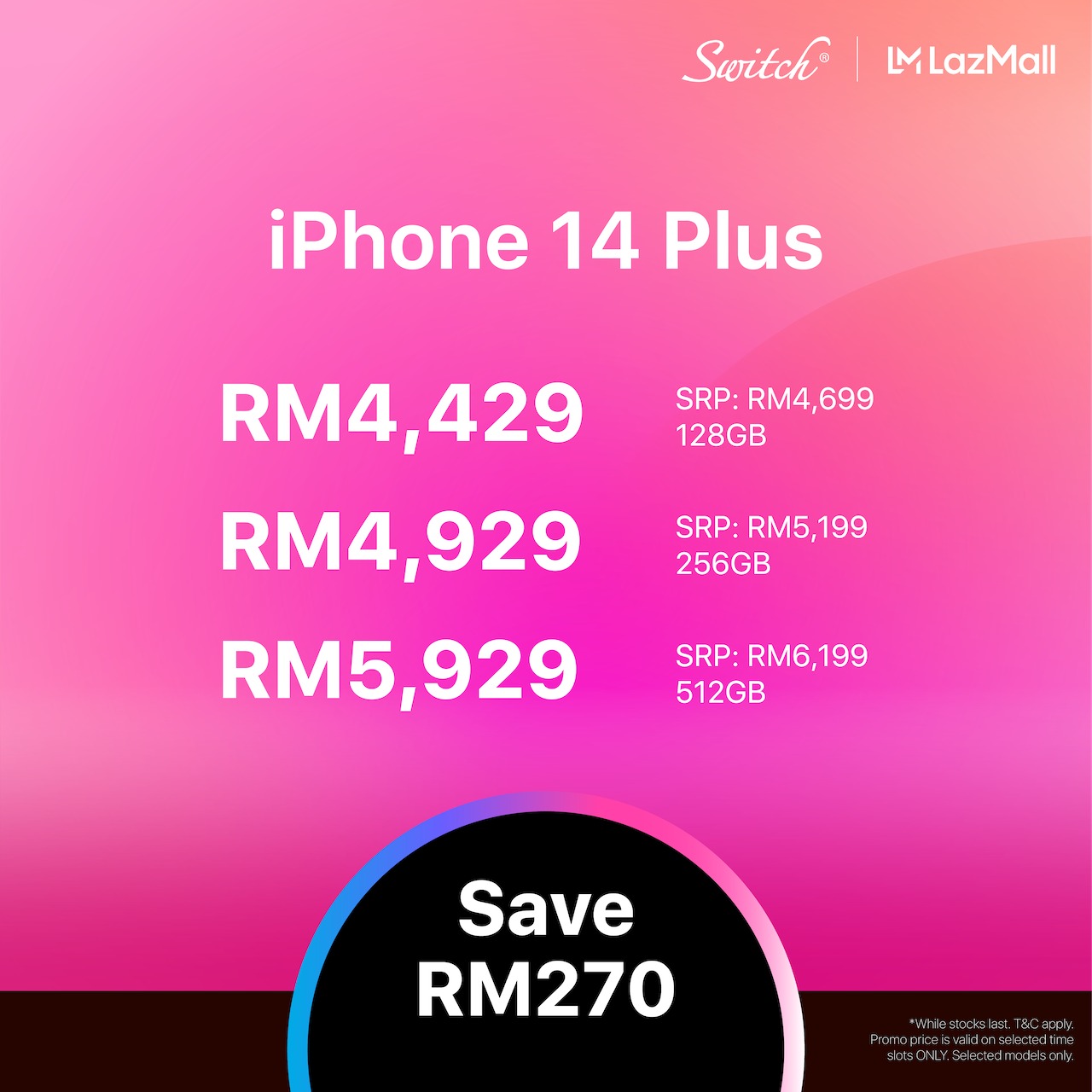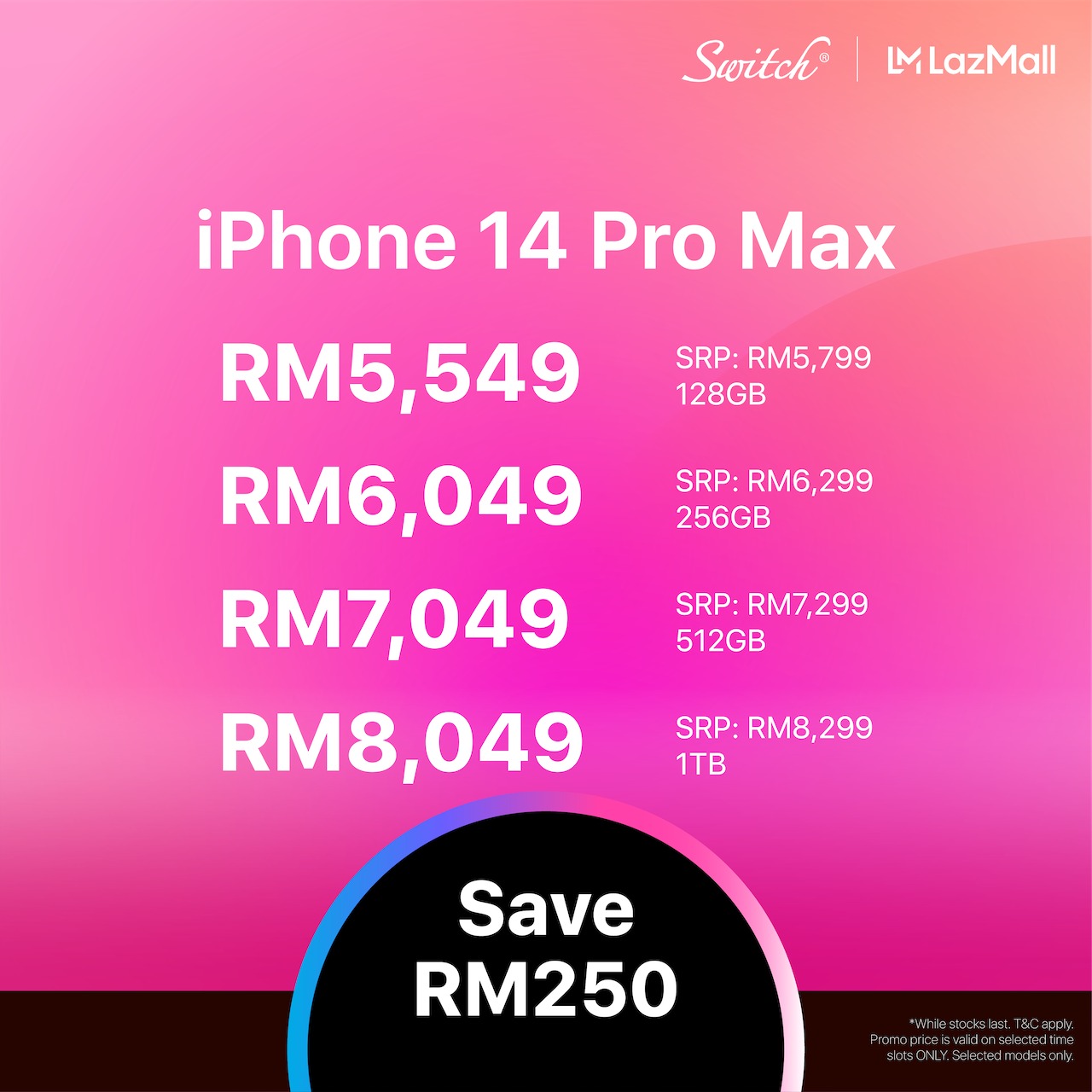 大马 Apple 经销商 —— Switch 惊喜推出一日限时优惠,iPhone 通通都有折扣,而且多达RM350!其中包括最新的 iPhone 14 Pro 及 iPhone 14 Pro Max 哦!