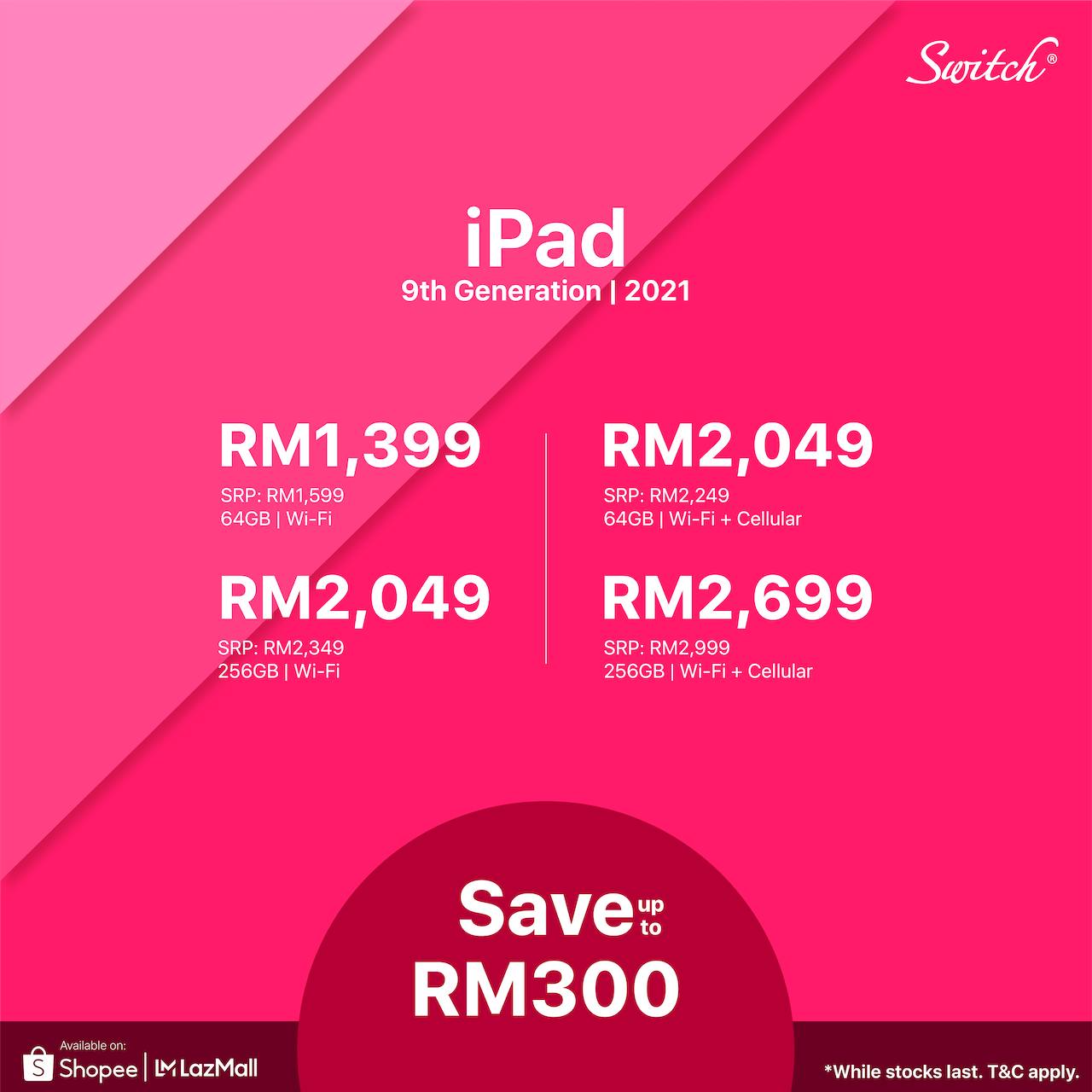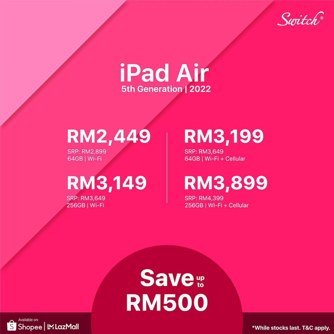 RM3,649.00RM3,149.00 - 64GB | Wi-Fi + Cellular: