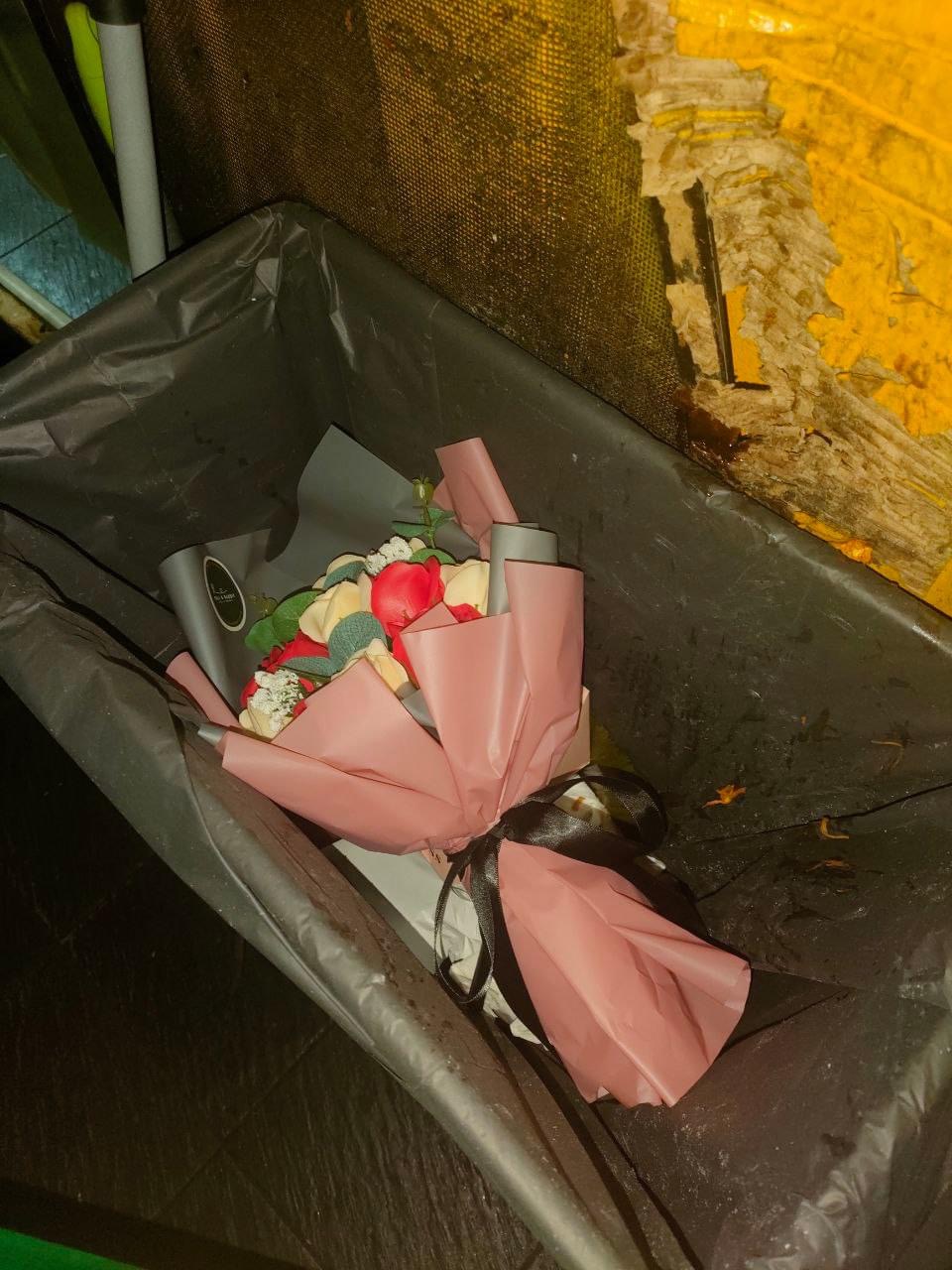 这是我们在 Sunway Geo 分店的垃圾桶找到的一束花。