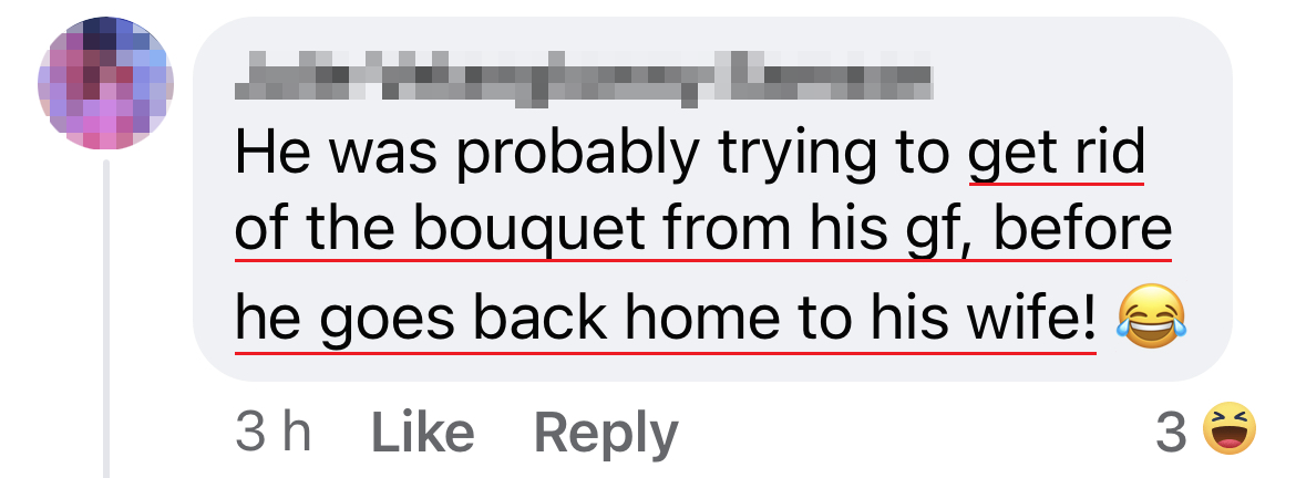 ▼ 又或者是「女友送的花不能带回家给老婆看到?」
