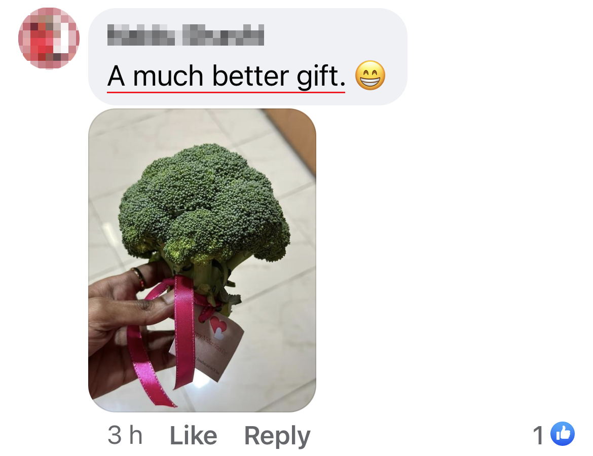 ▼「所以说送西兰花更好,被拒绝了还能带回家煮来吃。」