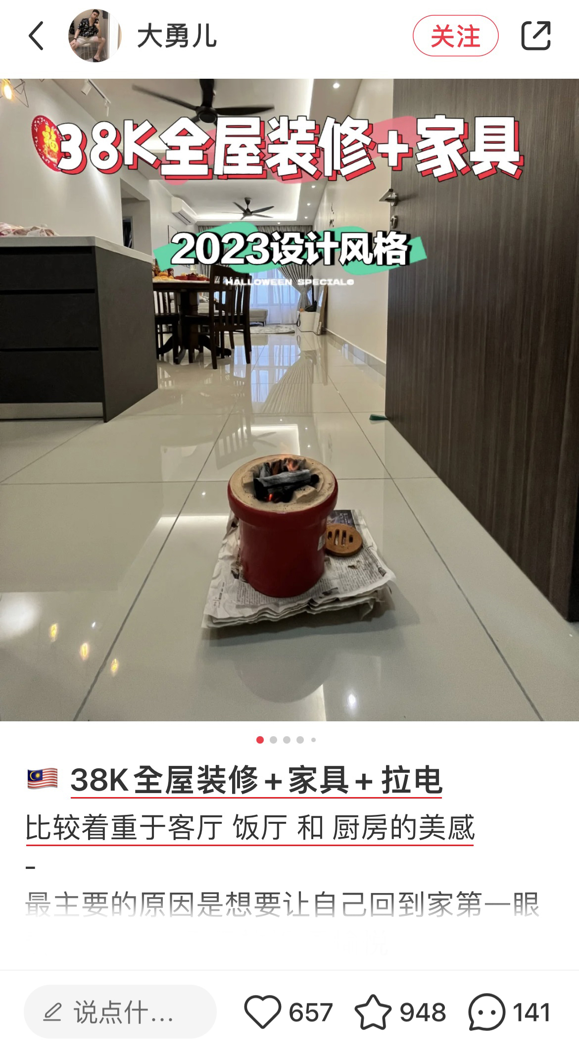 装修新家就是什么都要钱,除非装修费用还要购买新的家具,加起来都是一笔大数字!但这名大马网友精打细算,总花费竟然才不到RM40k!