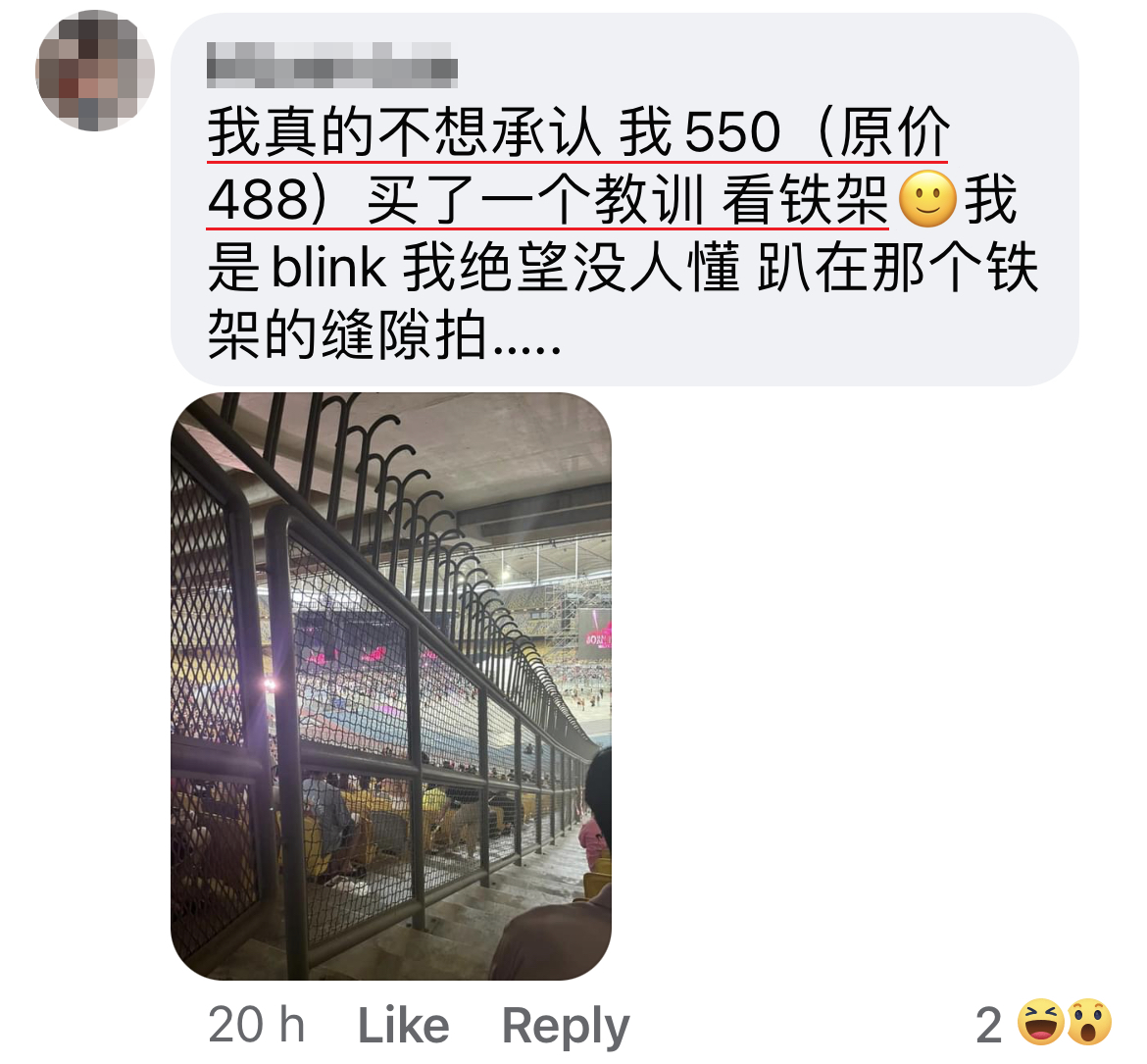 Blackpink演唱会RM788座位「全程看铁网、看墙壁」RM188视野更好!