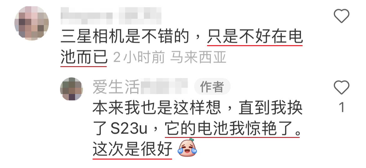 ▼ 据贴主评论分享,S23 Ultra 电池进步很多!