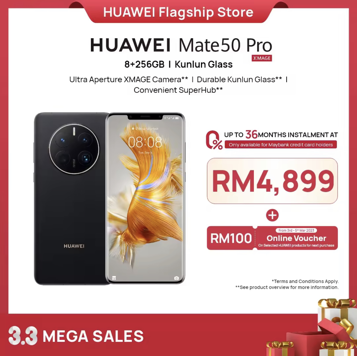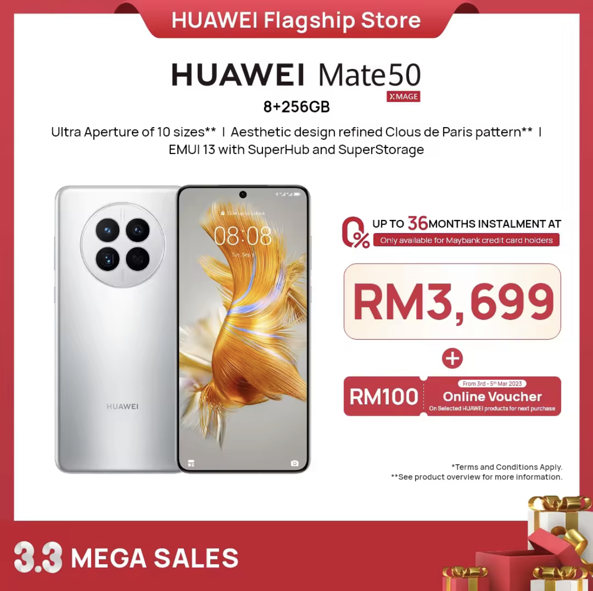 ▼ ① HUAWEI Mate 50 – 附送RM100礼券