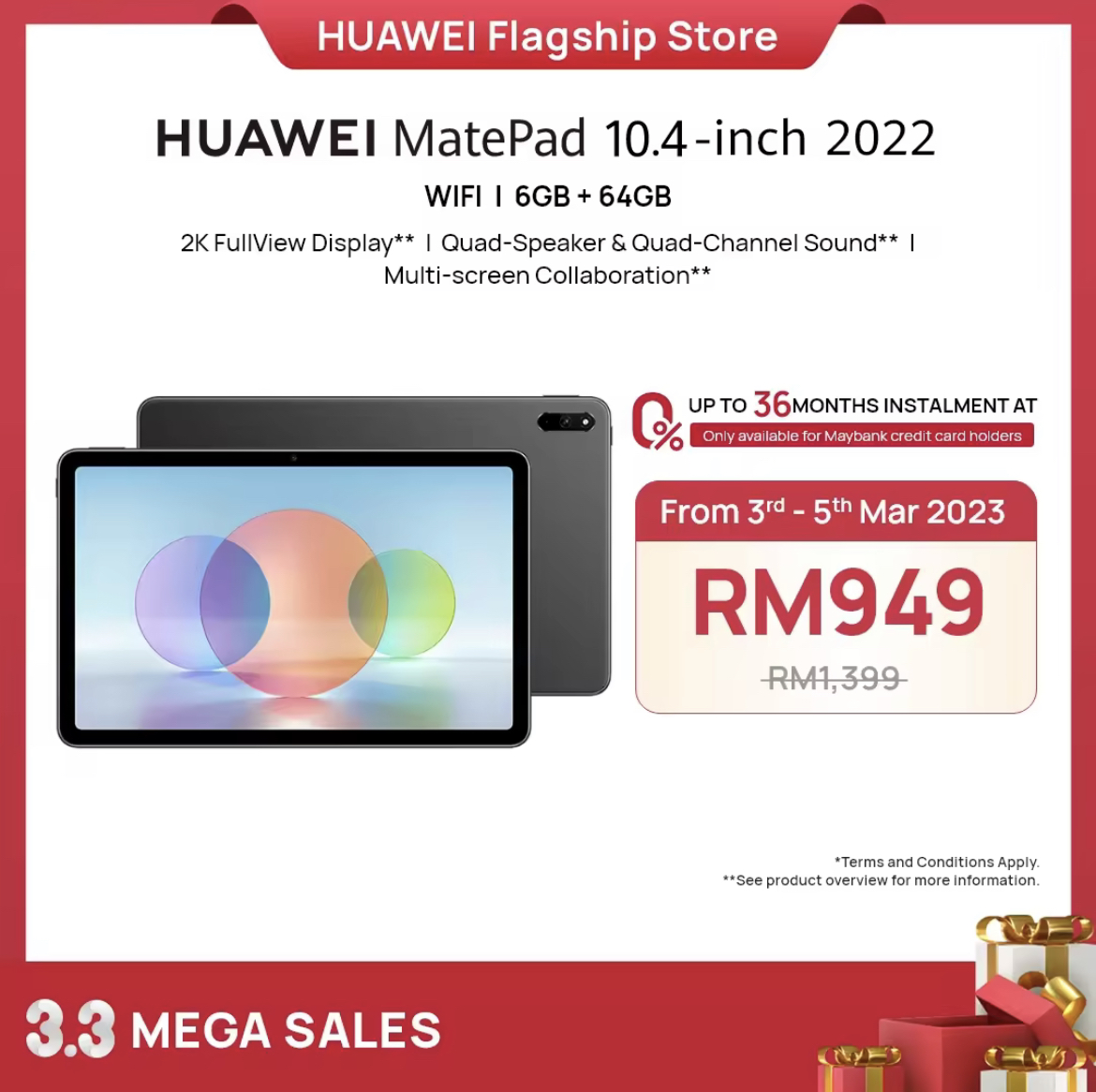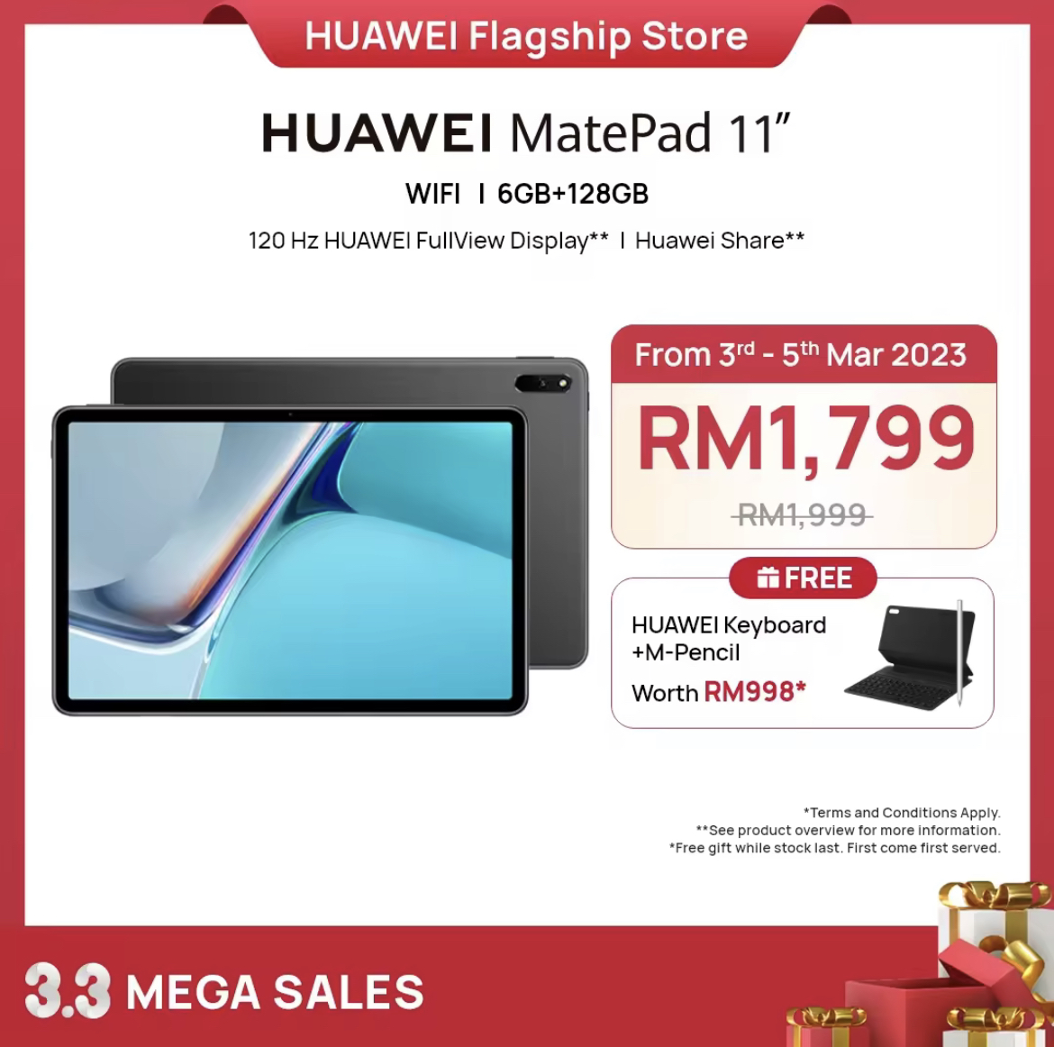 ▼ ③ HUAWEI MatePad 11 Tablet – 附送键盘+触控笔 (价值 RM998)