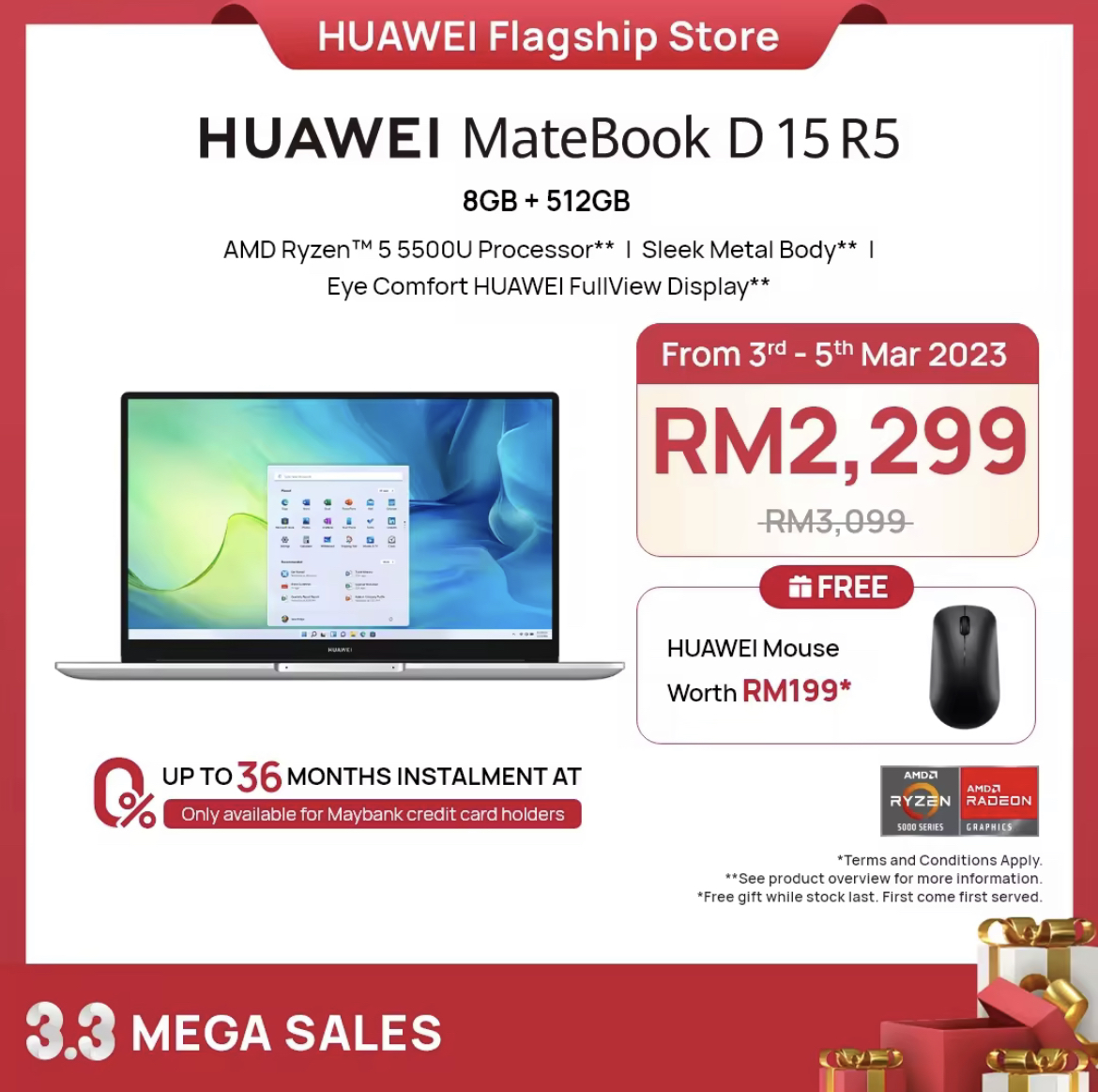 ▼ ② HUAWEI MateBook D15 Laptop – 附送华为滑鼠 (价值RM199)