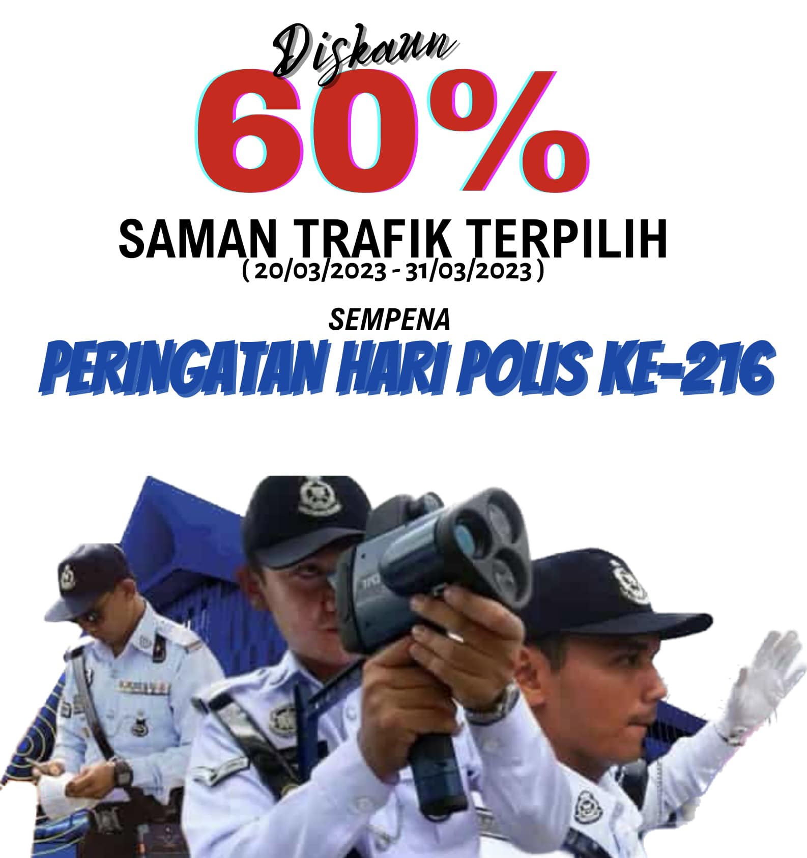 即日起至 3月31日,凡是拖欠罚单的大马民众只需到各处的交警柜台,缴付警方交通罚单即可享有60%折扣优惠。不分州属、不分区域,全马都有哦!