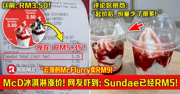 McD冰淇淋涨价!大马网友吓到「现在Sundae已经RM5了」!评论区:云顶的McFlurry卖RM9!