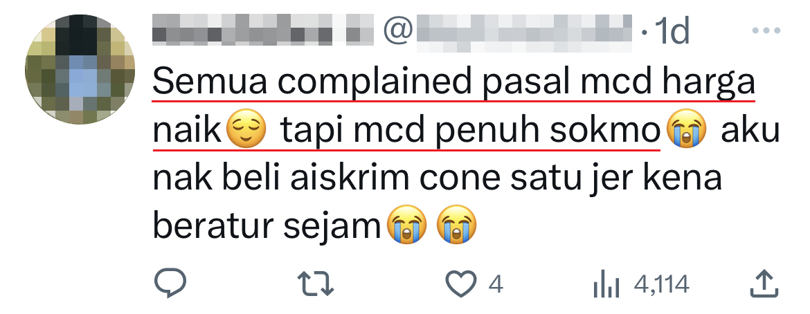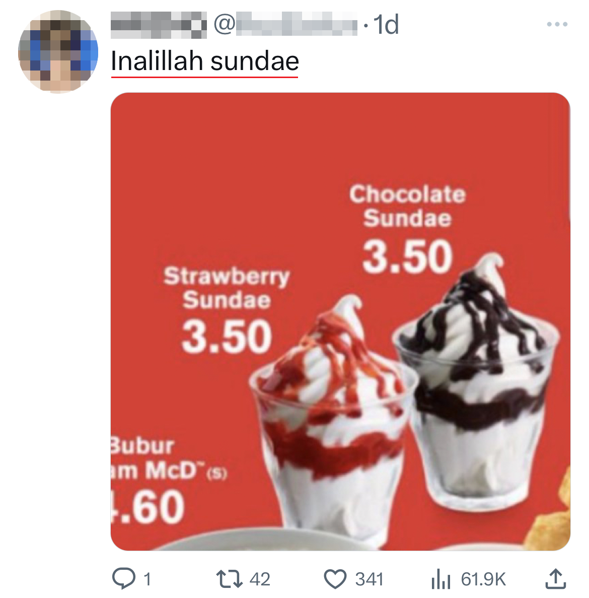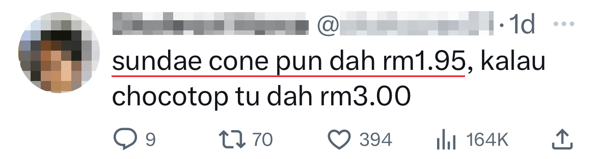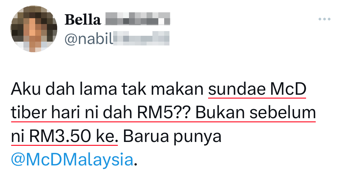 一名大马网友在 Twitter 发文感叹,许久没吃麦当劳的 Sundae 冰淇淋,没想到RM3.50已经变成RM5!