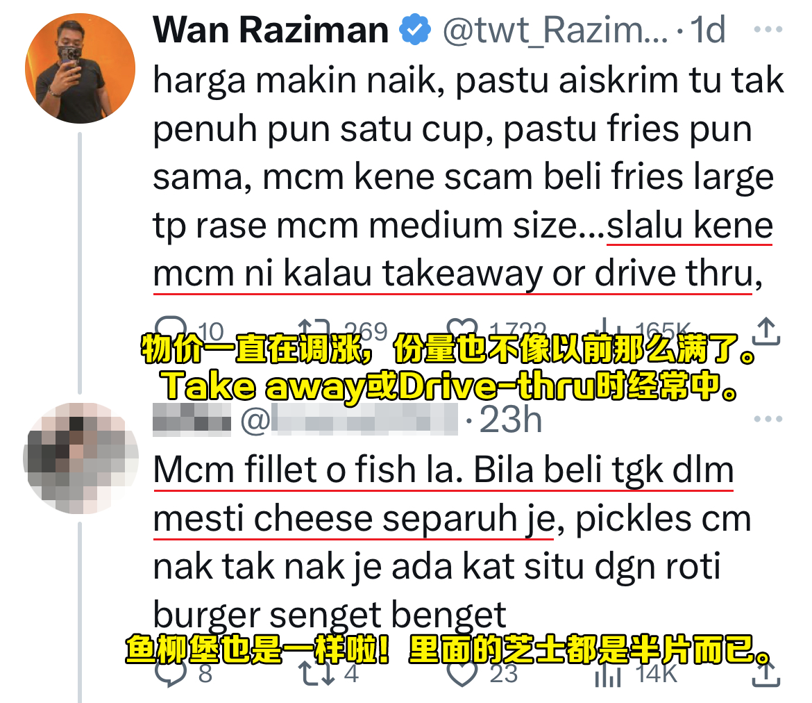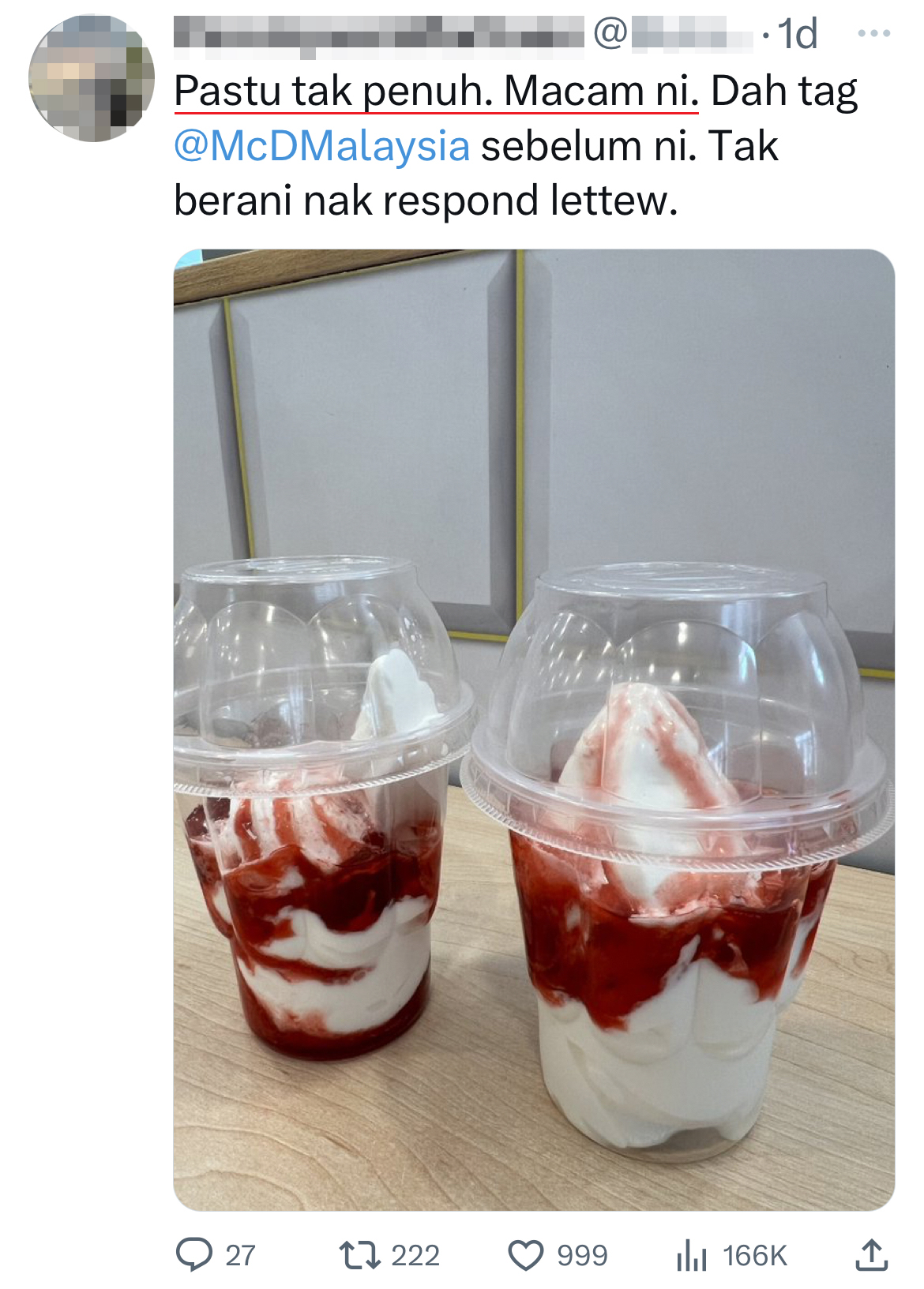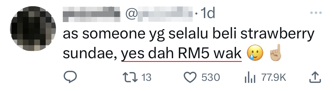 该名贴主在文中特意标签大马麦当劳官方推特账号,并写道:「我很久没吃麦当劳的 Sundae 了,今天突然变成RM5了?之前不是RM3.50的吗?所以这是新的?」