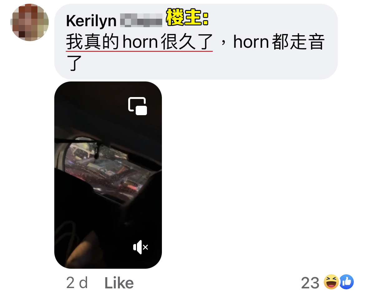 ▼ 事主表示:喇叭按到都快坏了。
