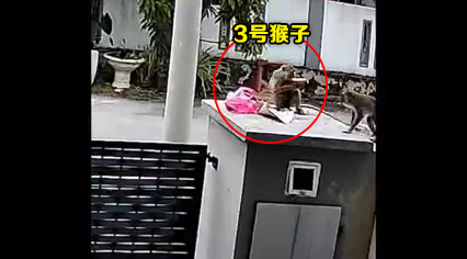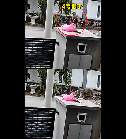 ▼ 拉近看,原来是猴子!首先第一只先是拆开外卖包装,拿起新鲜热腾腾的 Roti Canai 开开心心地走了!收获满满~