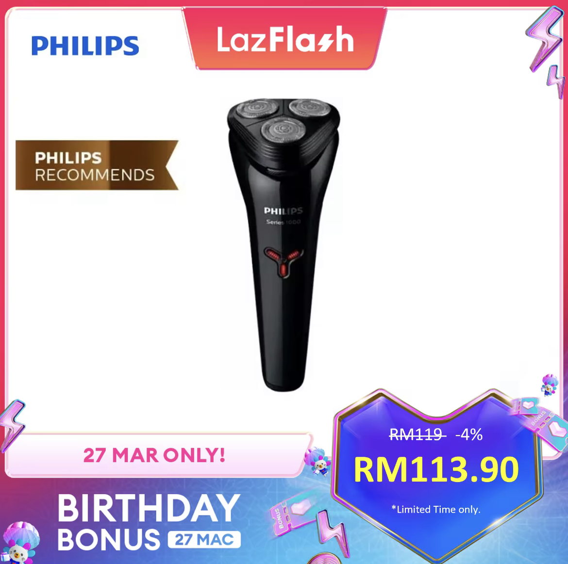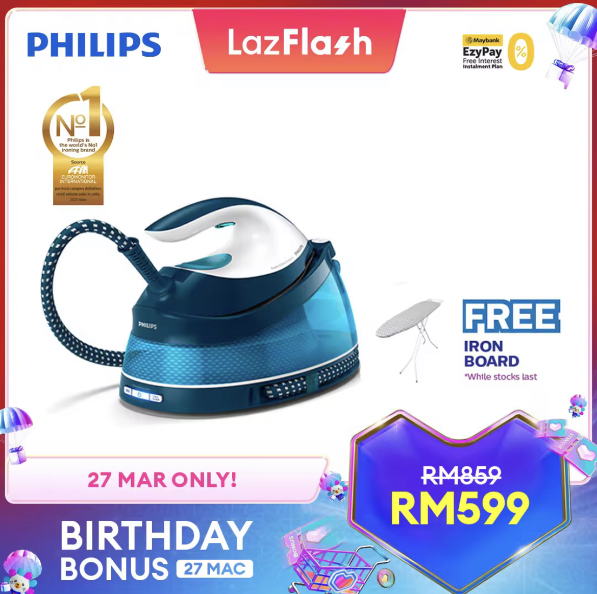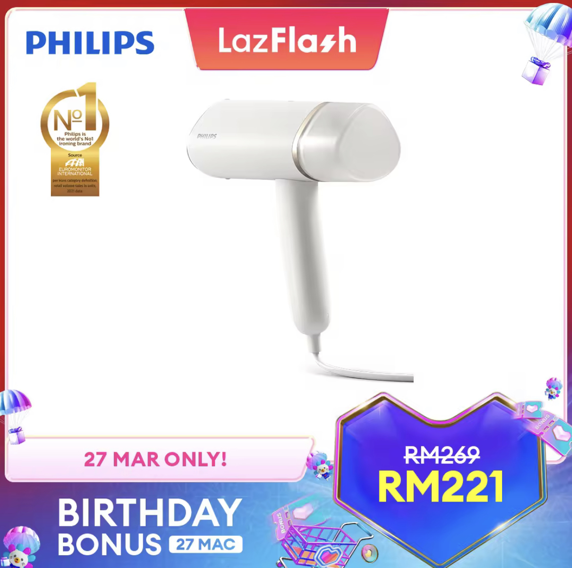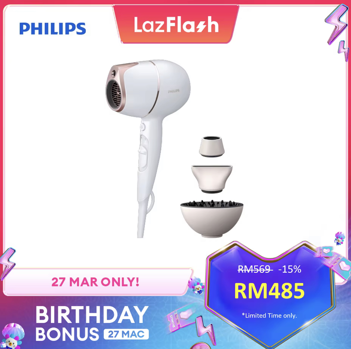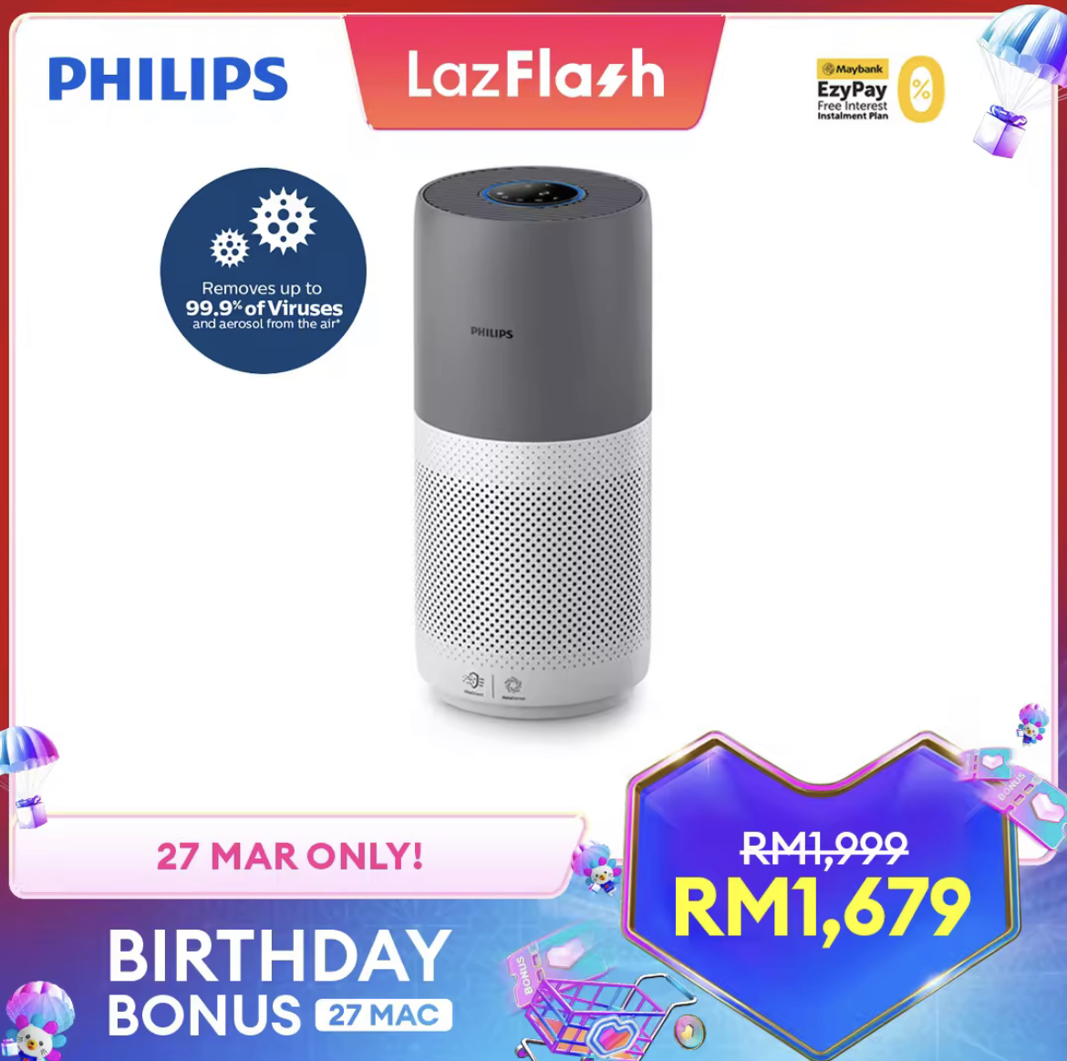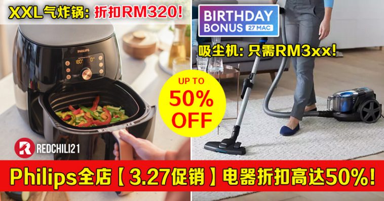 即日起至27日,Lazada 举办 Birthday Bonus 促销,Philips x LazMall 官方网店也惊喜推出特价优惠!全场折扣高达50%,领取优惠券再获额外折扣!