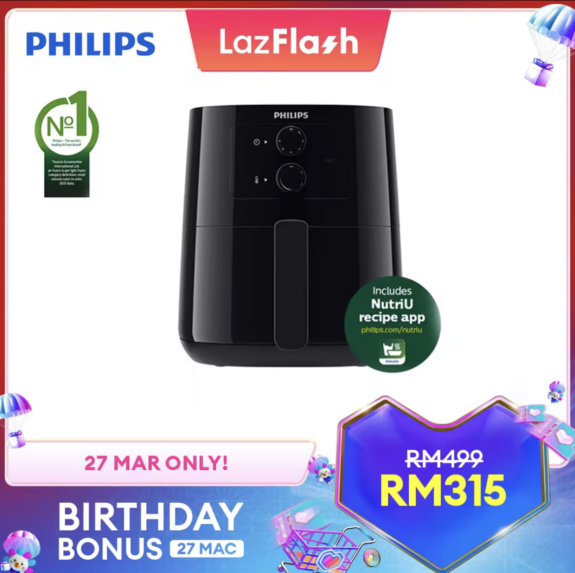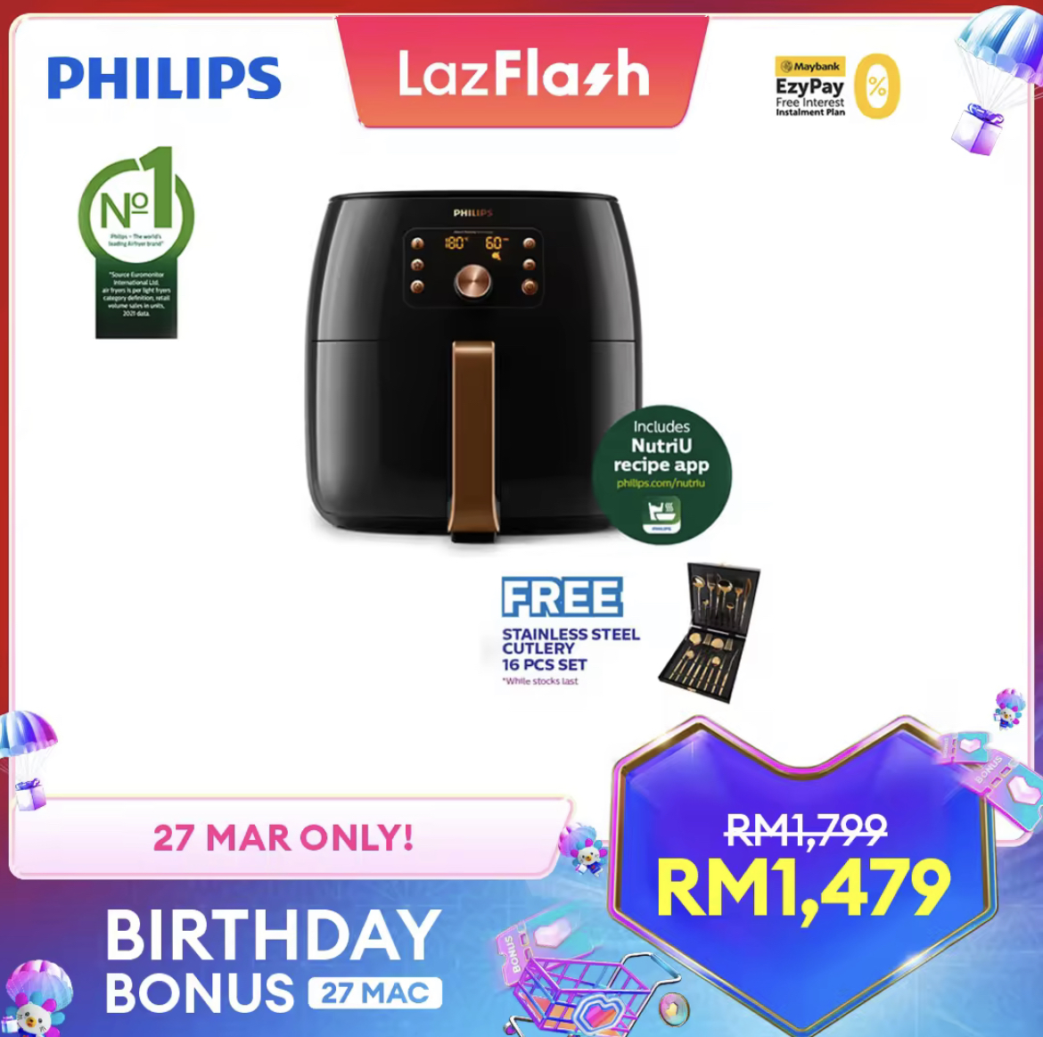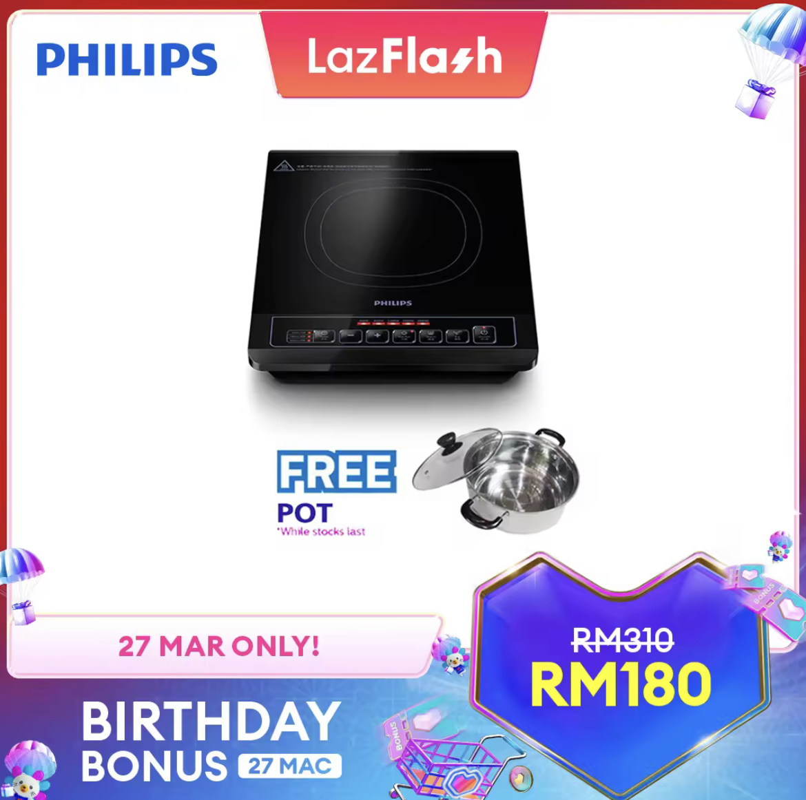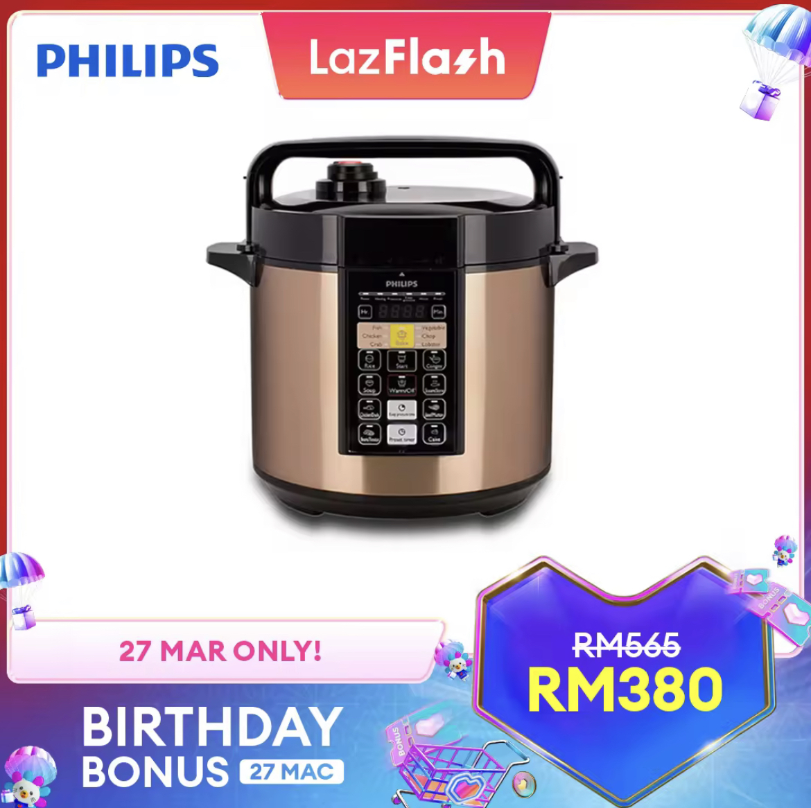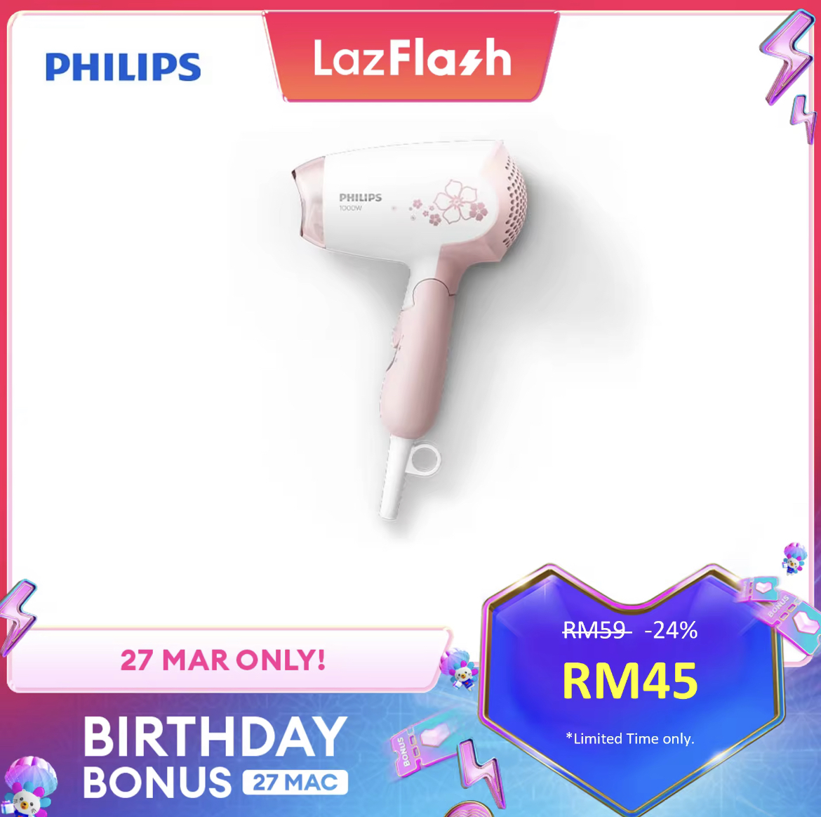 即日起至27日,Lazada 举办 Birthday Bonus 促销,Philips x LazMall 官方网店也惊喜推出特价优惠!全场折扣高达50%,领取优惠券再获额外折扣!