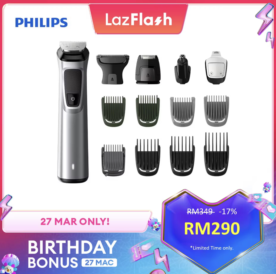 促销活动:Philips x LazMall 生日促销 全店折扣高达50%