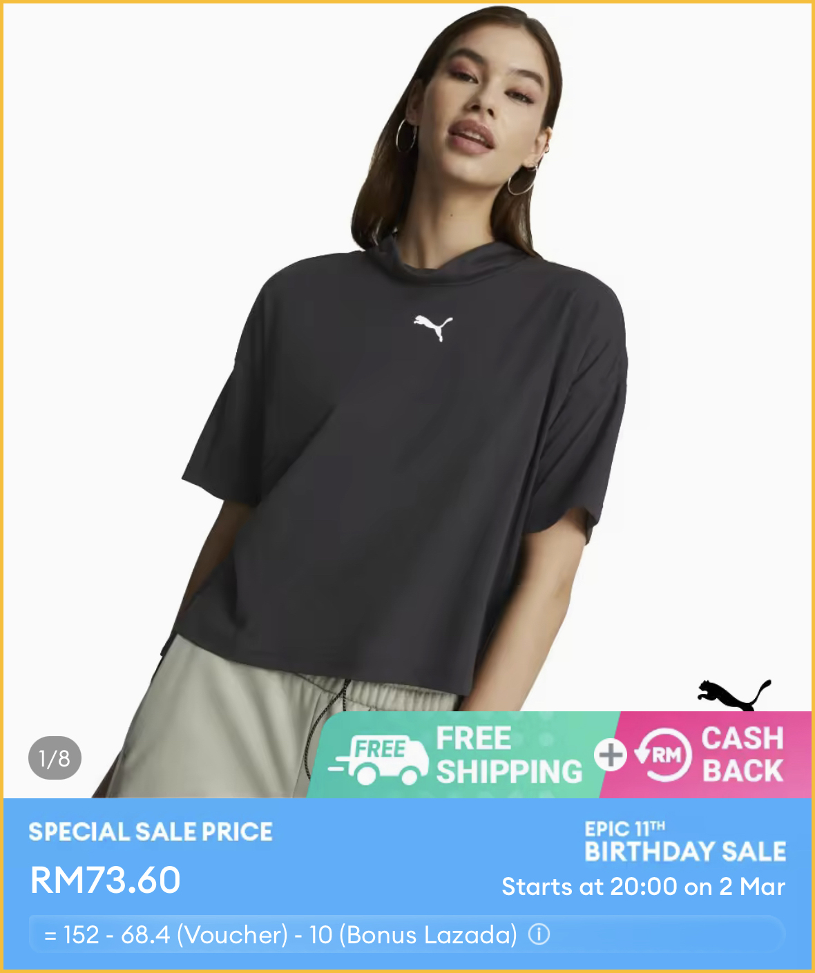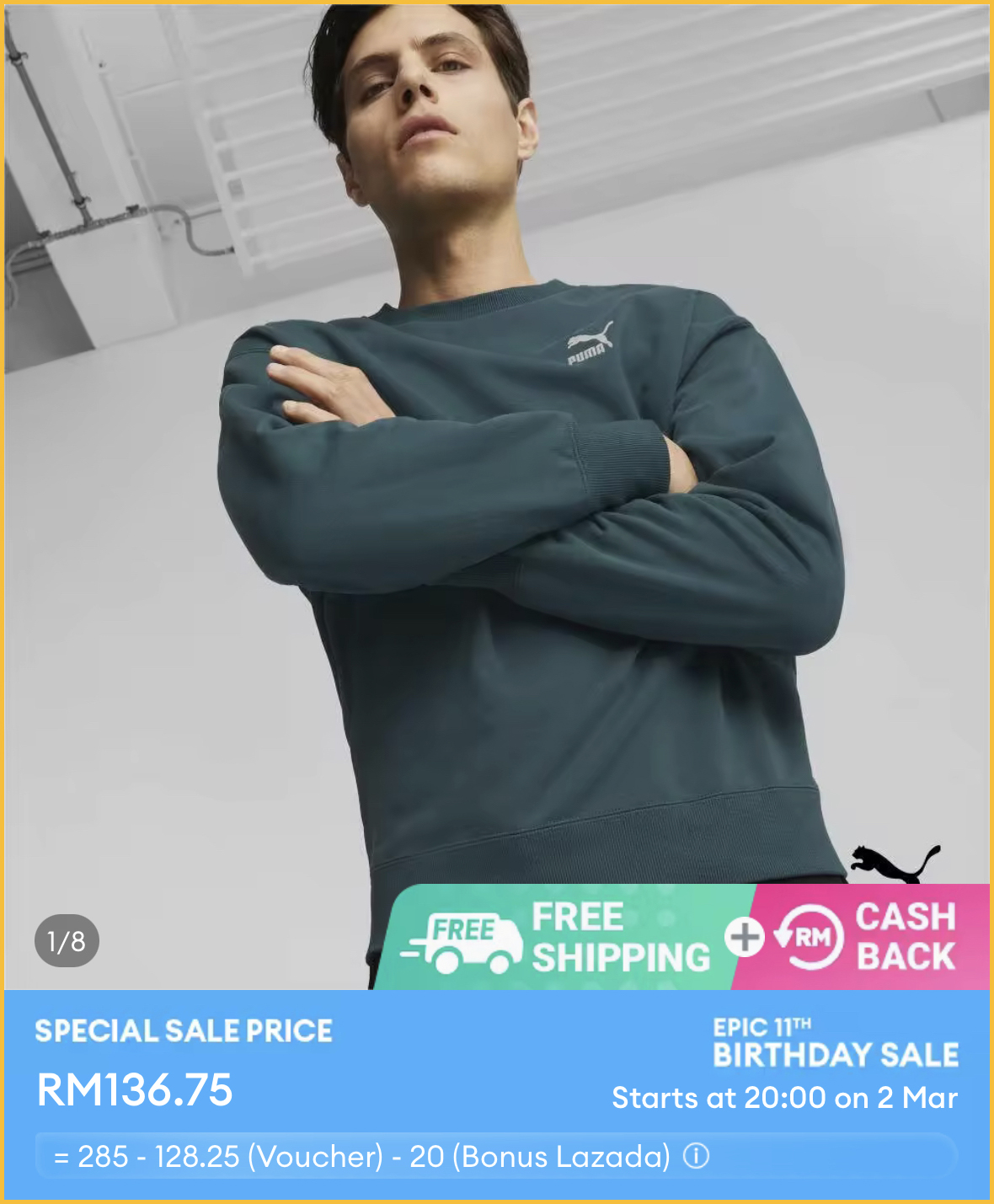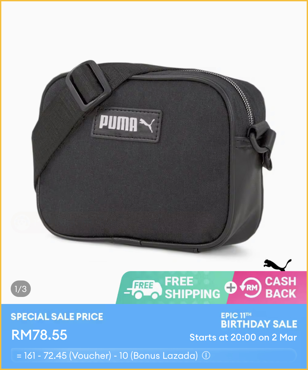 著名运动品牌 PUMA 将在 Lazada 购物平台的官方店铺举办3.3大促销,商品折扣高达50%+45%,满2件再扣额外10%!最后再加上Lazada Bonus,真的太值得啦~