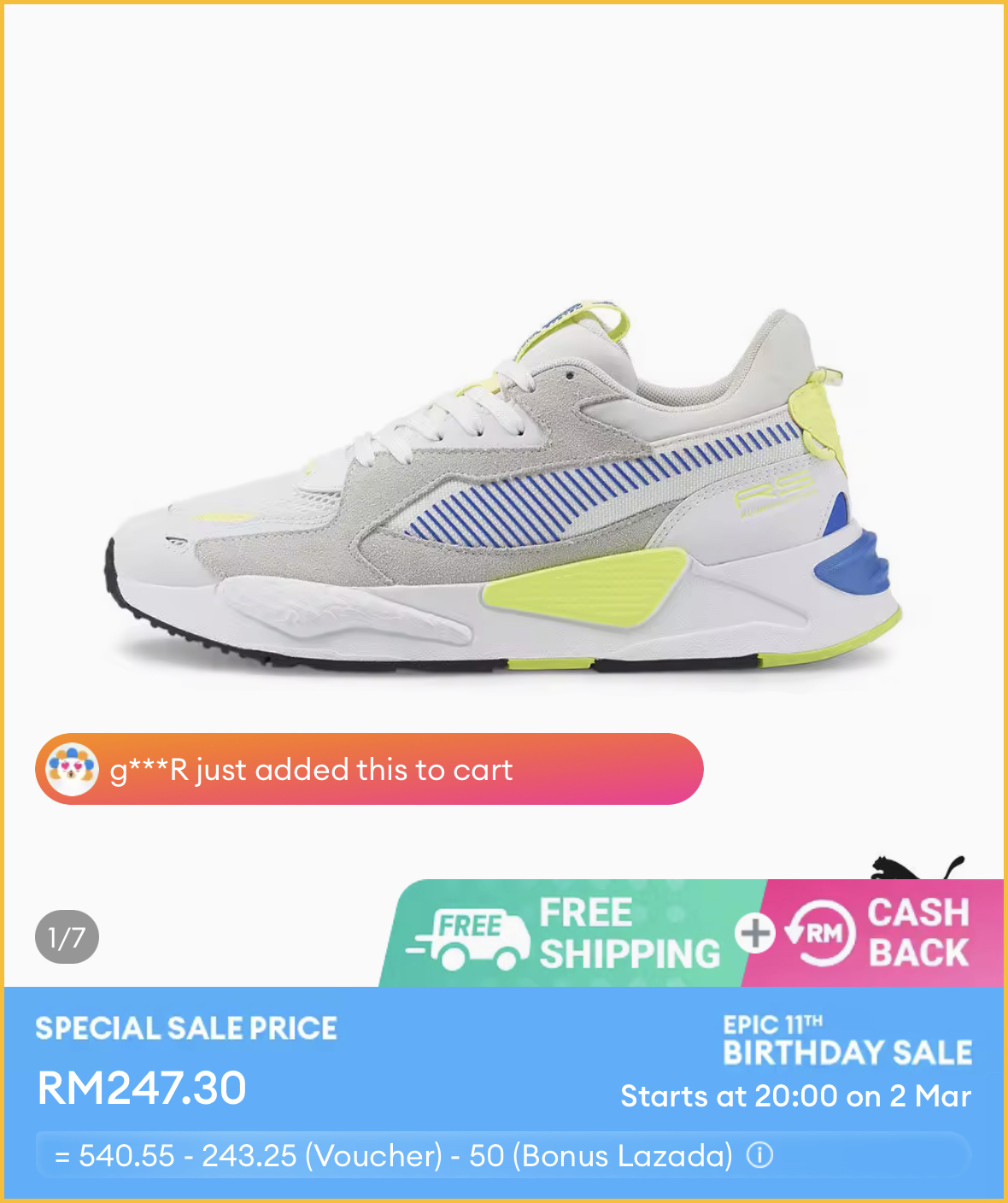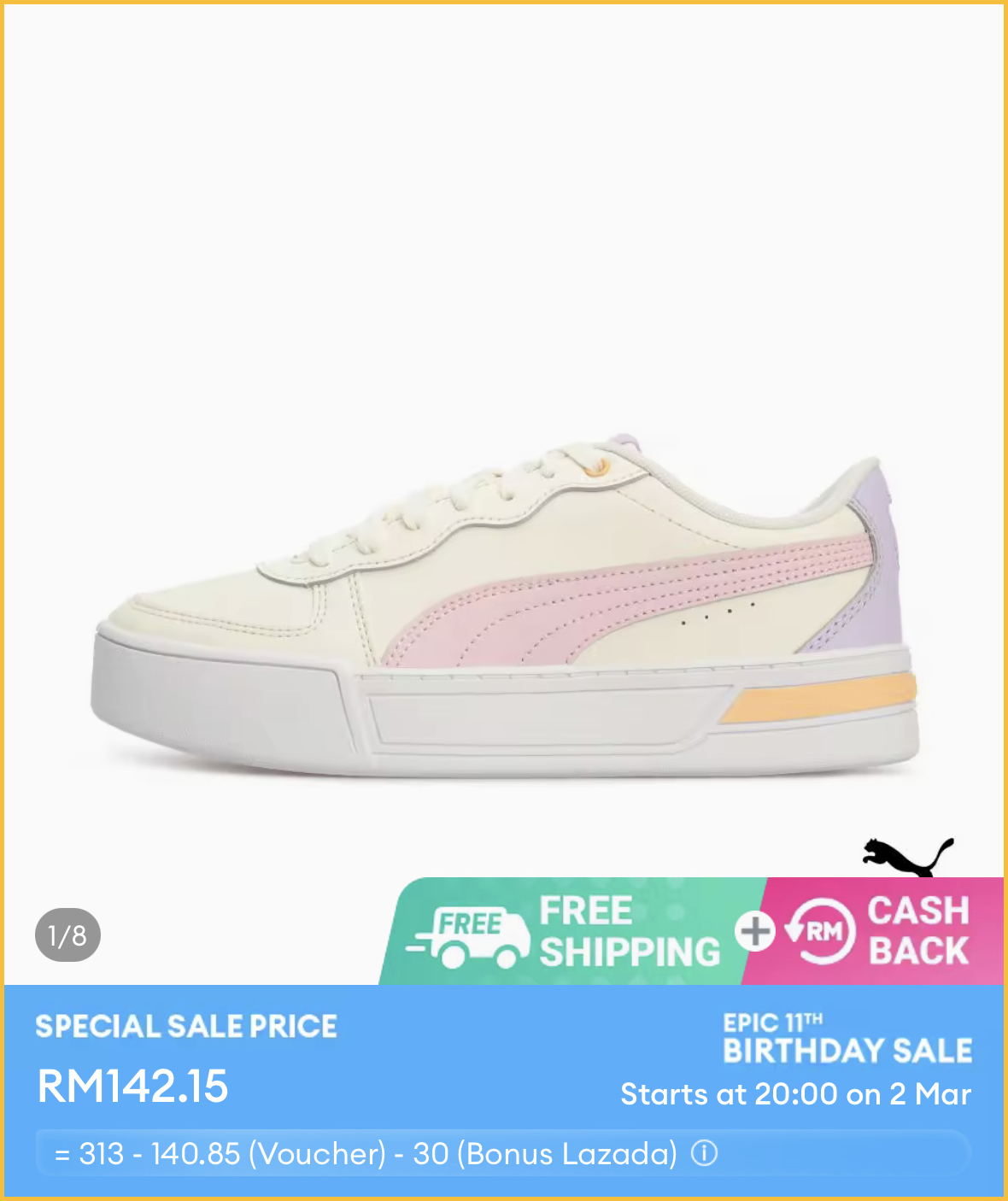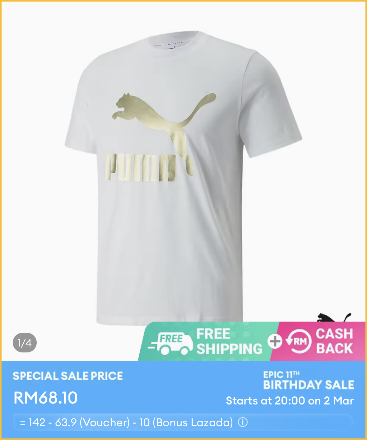 著名运动品牌 PUMA 将在 Lazada 购物平台的官方店铺举办3.3大促销,商品折扣高达50%+45%,满2件再扣额外10%!最后再加上Lazada Bonus,真的太值得啦~