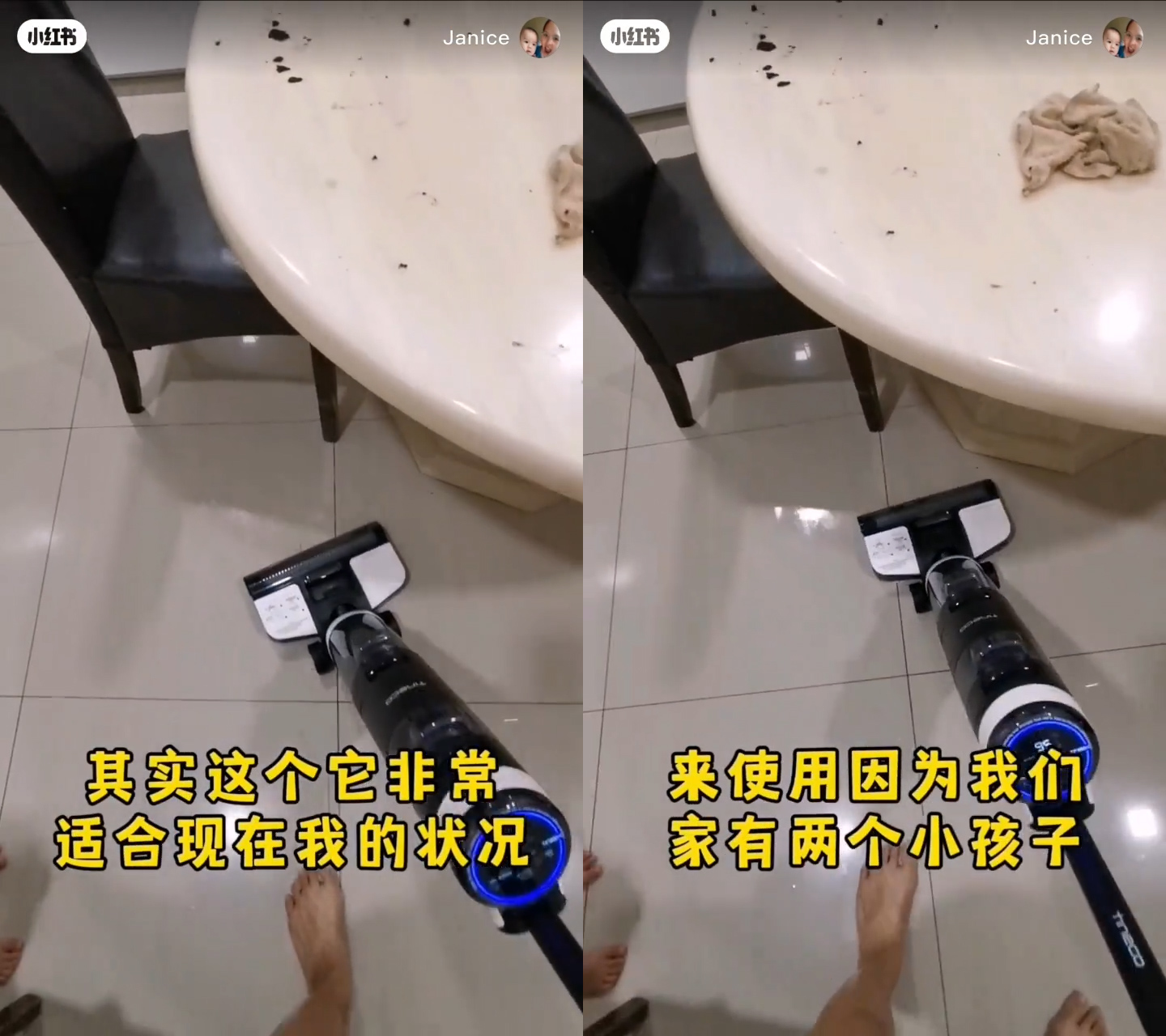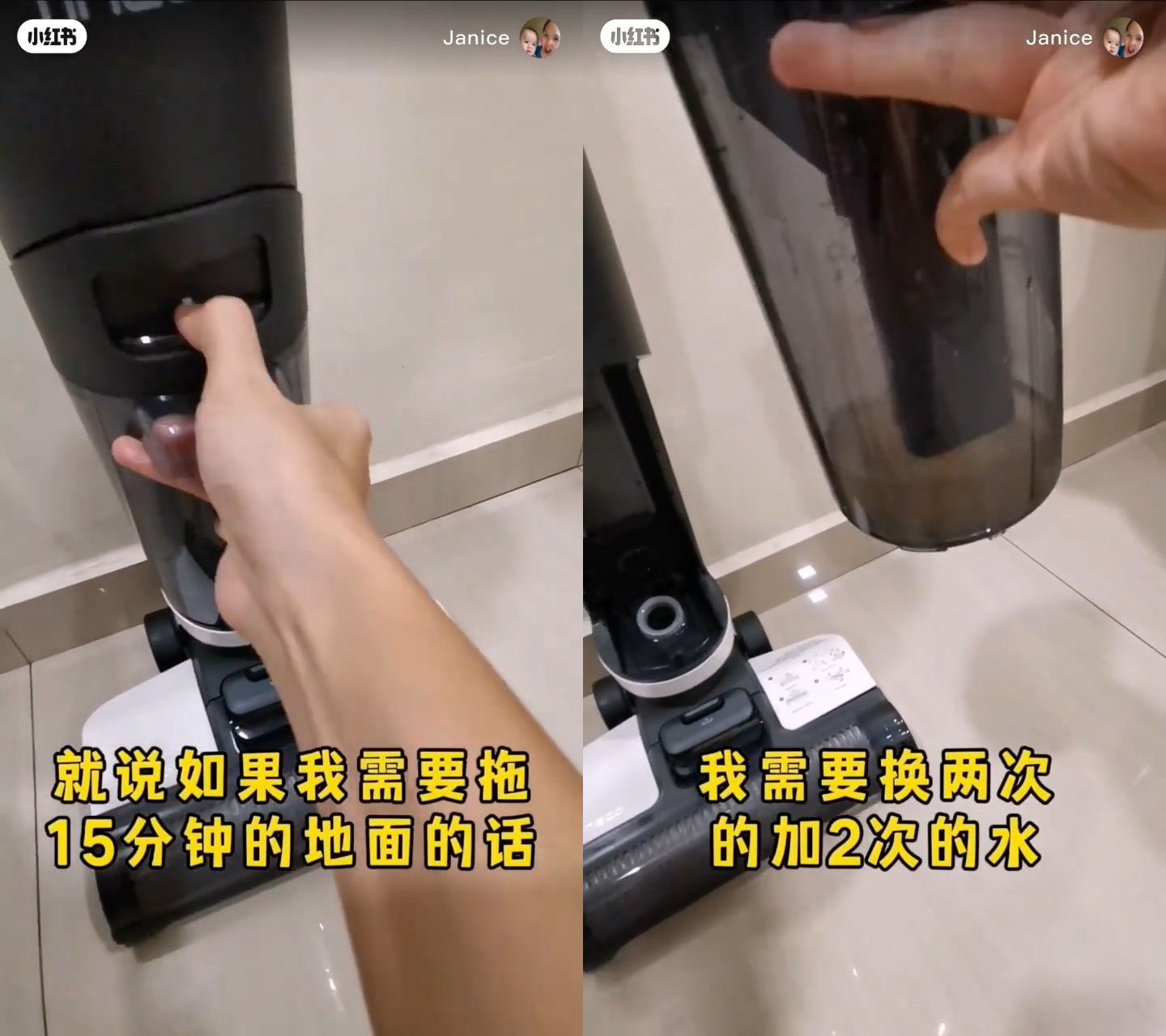 ▼ 视频中 “Janice Mum” 也详细说明了这款拖地机的操作方式及用量。