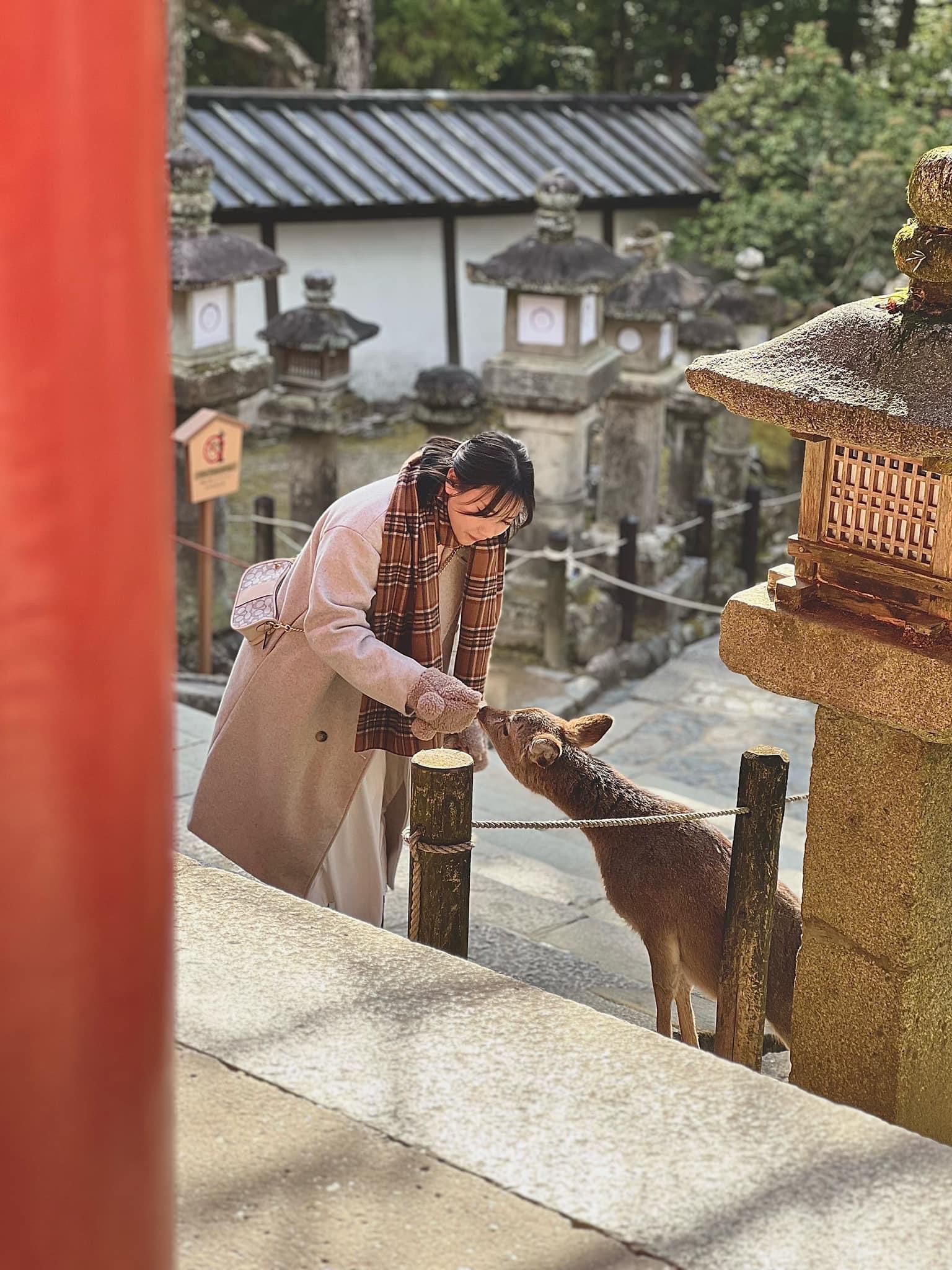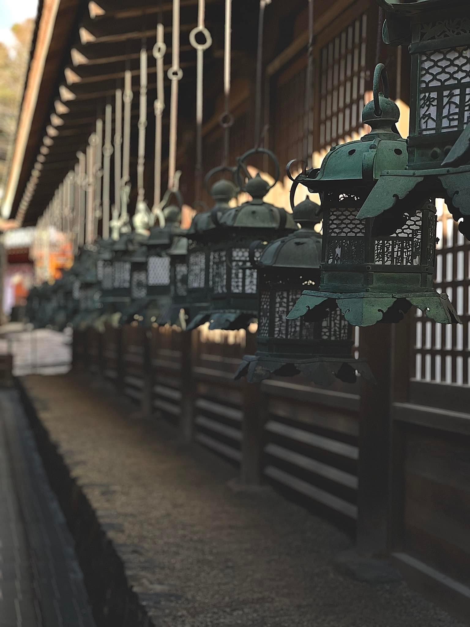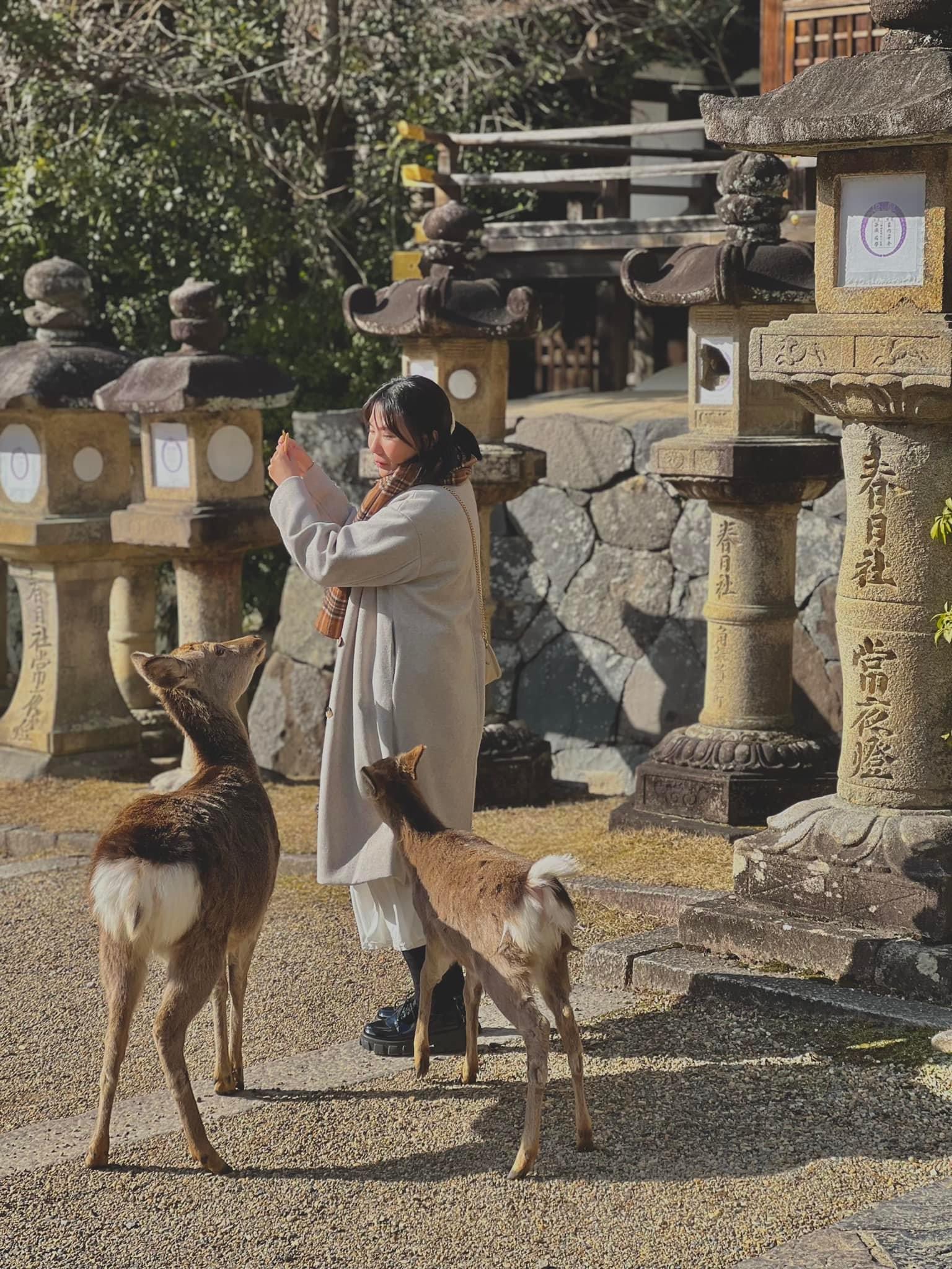 商店街出口就是超火红的【中谷堂】艾草mochi店。然后步行到【春日大社】祈福。沿路都能接触到很多的梅花鹿。