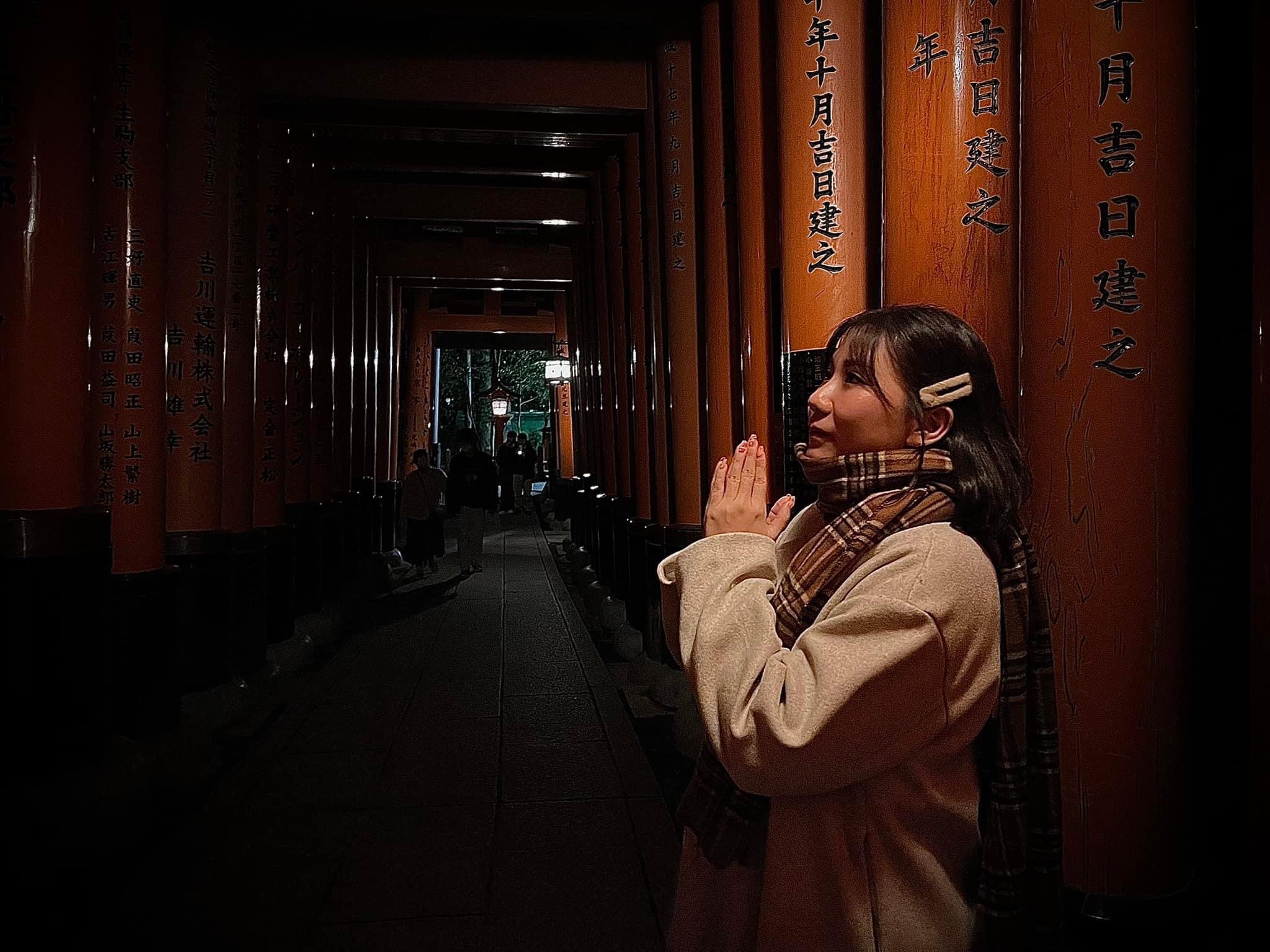 去到伏见稻荷神社已经天黑了。夜间的伏见多了一份神秘感。